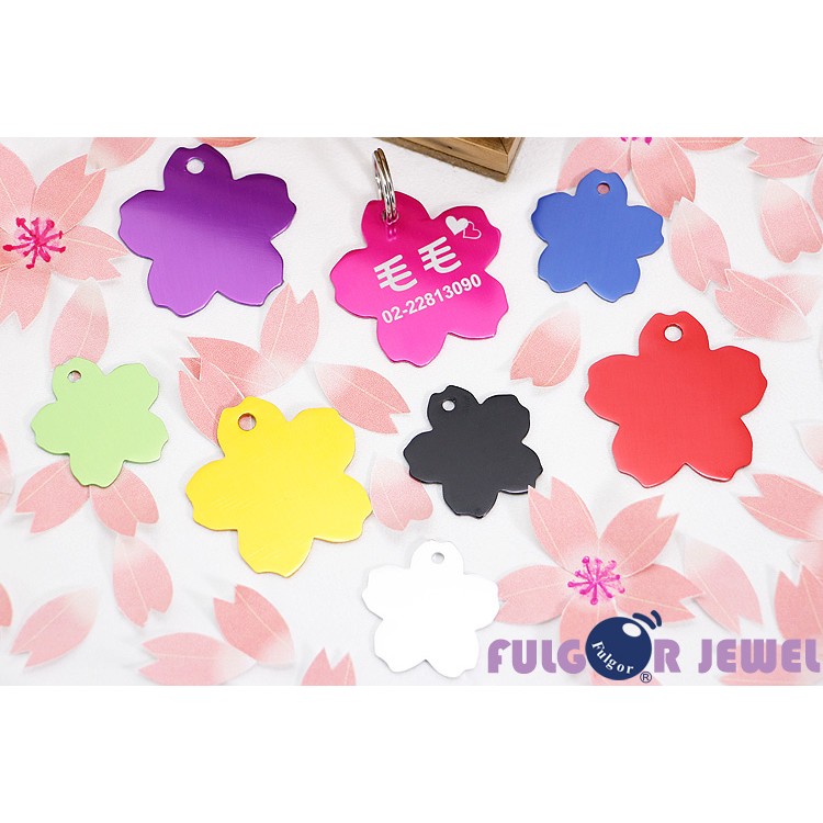 【Fulgor Jewel 富狗】 客製 寵物吊牌 名牌 彩鋁材質 櫻花造型 免費雕刻 限文字 客製化 掛牌 吊牌