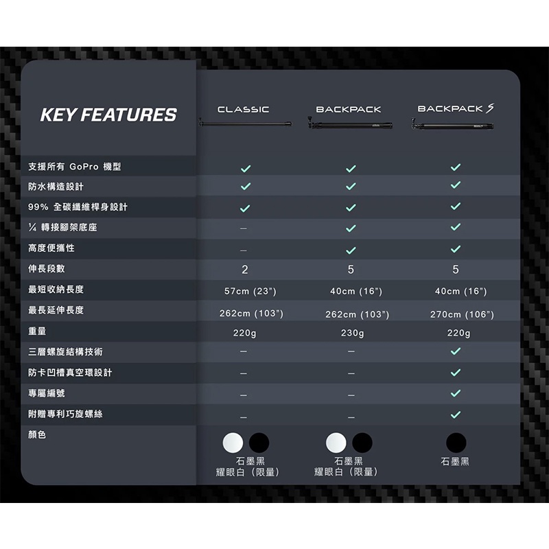 【彈藥庫】#270Pro 碳纖維 超長 自拍桿 自拍棒 黑 運動相機 碳纖自拍桿 #270Pro-BPB