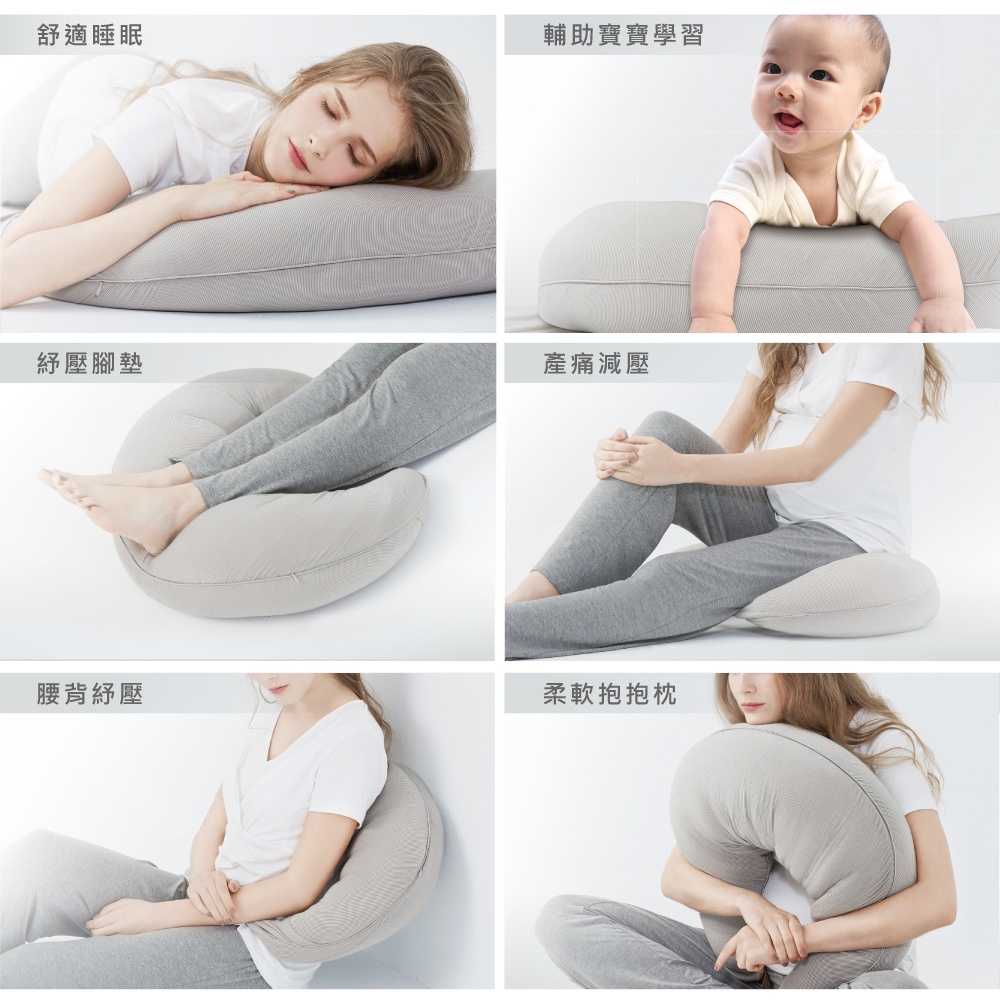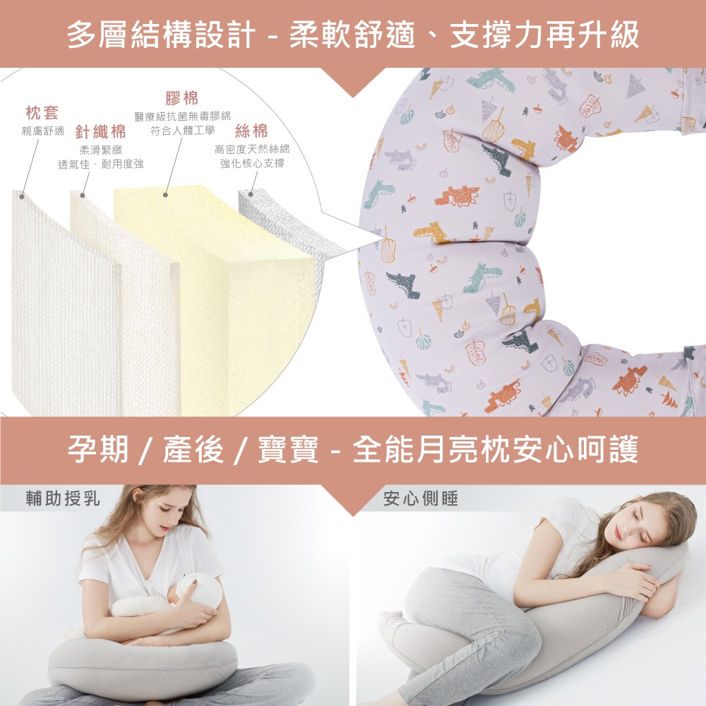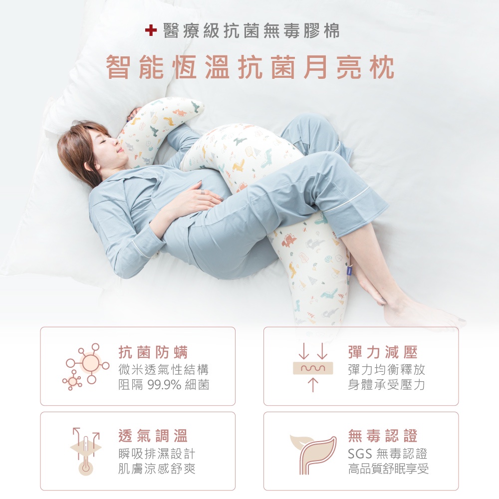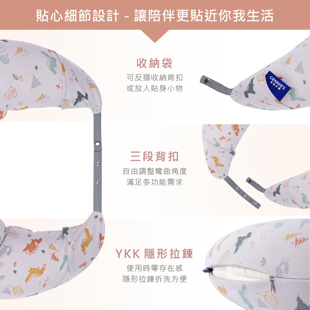 【Gennies 奇妮】智能恆溫抗菌月亮枕-恐龍樂園/沉穩灰(GX80)哺乳枕 孕婦枕 紓壓枕 側睡枕 嬰兒哺乳枕 現貨