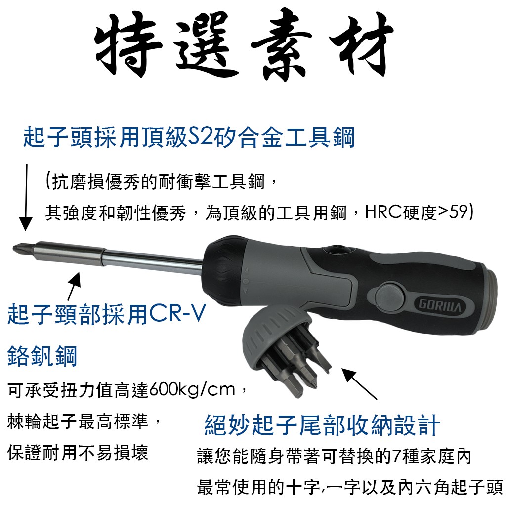 【Gorilla】 7合1 專業省力長棘輪螺絲起子 長起子 長螺絲起子