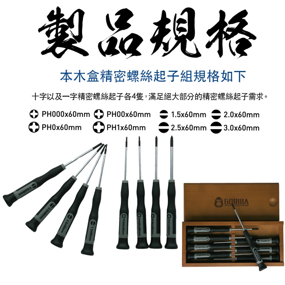 【Gorilla】 8in1標準精密螺絲起子組 台灣製造精品