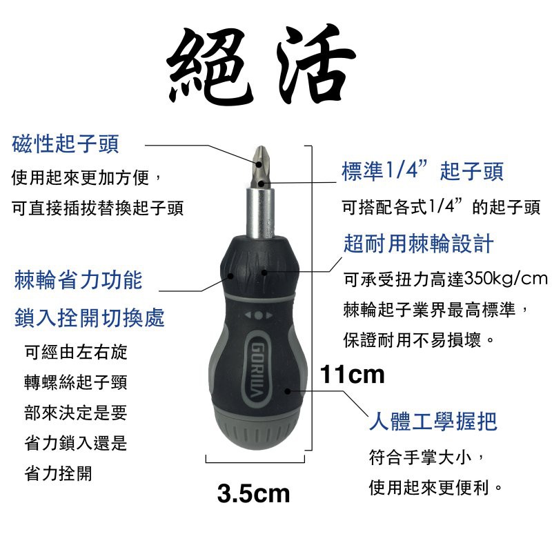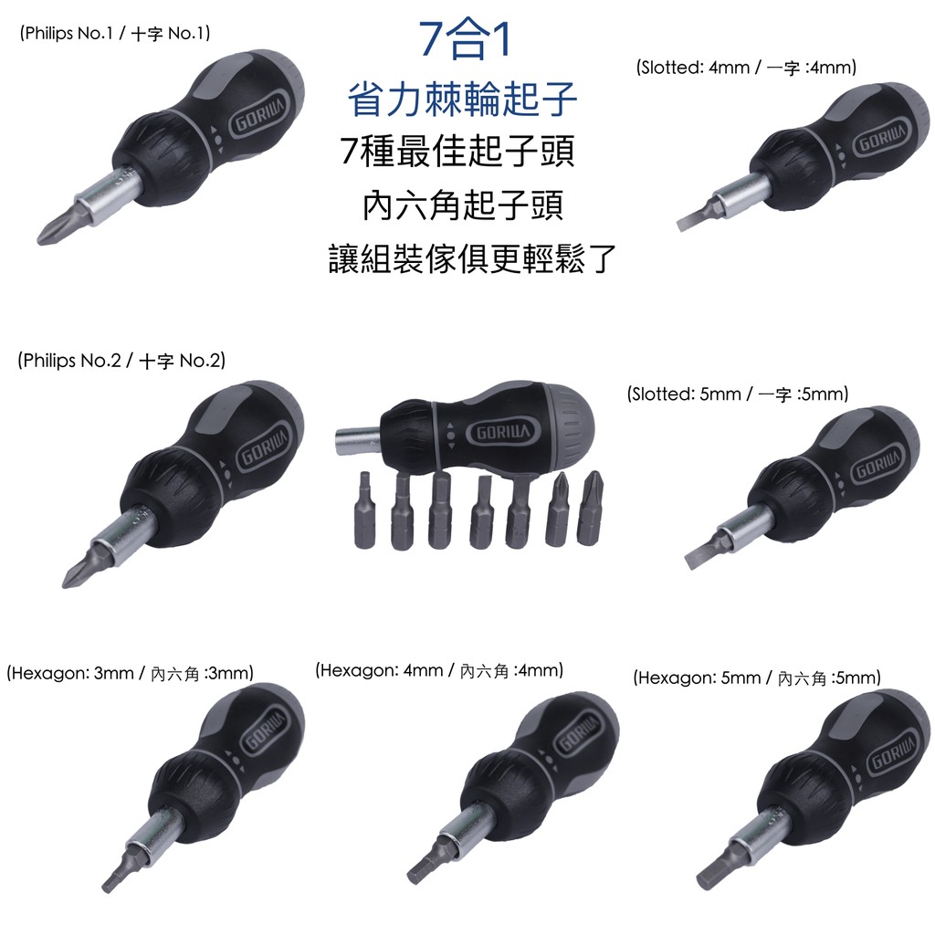 【Gorilla】7合1 專業省力短棘輪螺絲起子 起子 台灣製造精品