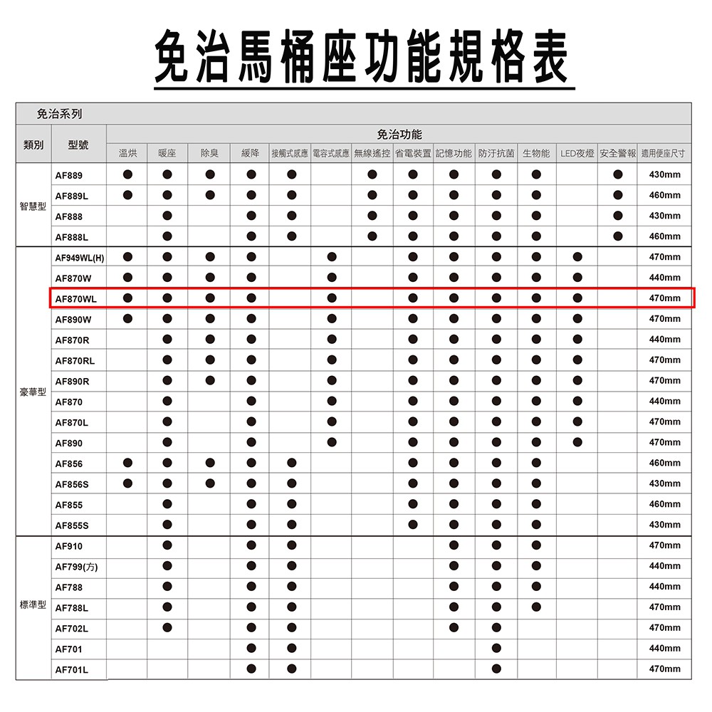 【HCG 和成】暖烘型免治沖洗馬桶座 AF870WL (47cm) 不含安裝