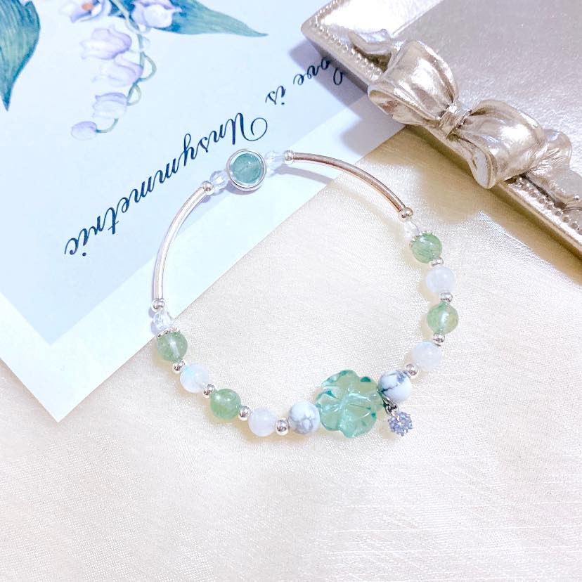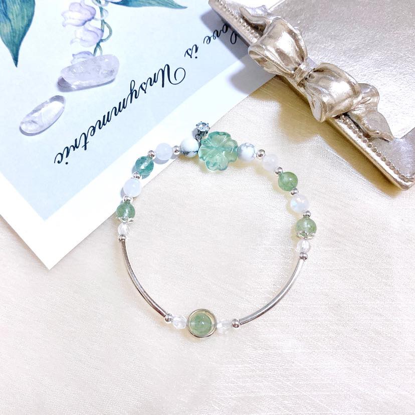 【HJ】助睡眠《小幸運》 手作水晶手鍊🍀🍀綠螢石/白松石/月光石/綠草莓