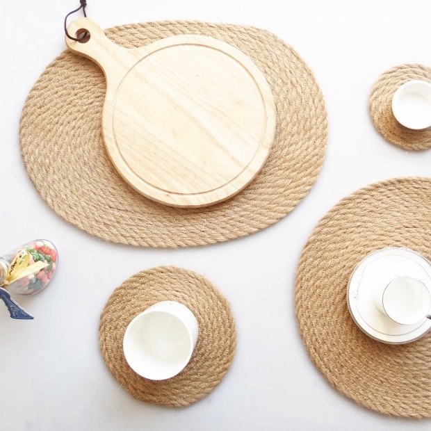 【HUAHUA】台灣現貨🔥日式隔熱墊 北歐杯墊 亞麻草編餐墊 圓形餐桌隔熱墊 亞麻杯墊 簡約盤墊鍋墊 編織餐墊
