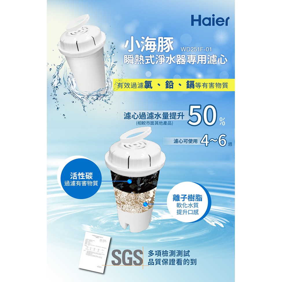 【Haier海爾】專用濾芯(WD251F-01)|原廠公司貨(適用型號:WD251A / WD251B / WD252)