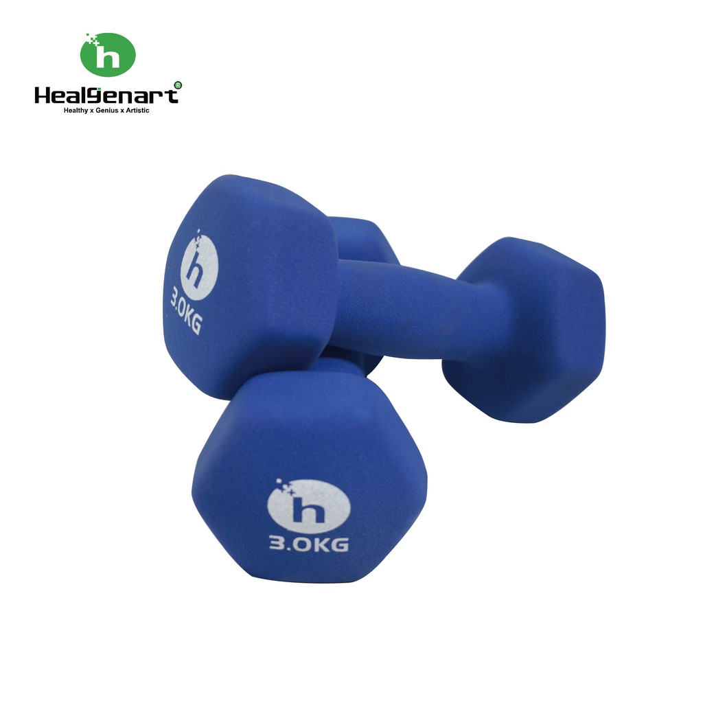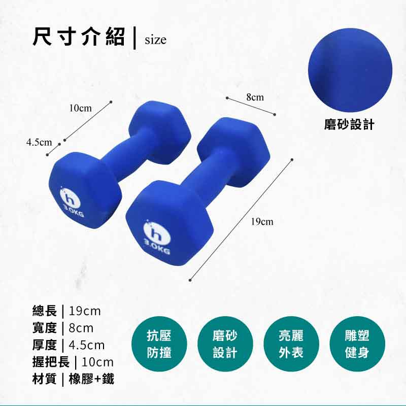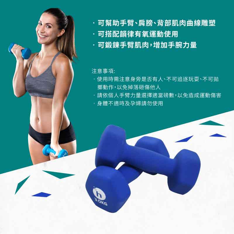 【Healgenart】韻律運動啞鈴(3kg)成對 耐磨防撞 六角啞鈴 有氧運動 瑜珈健身 舒適好握 (藍色)