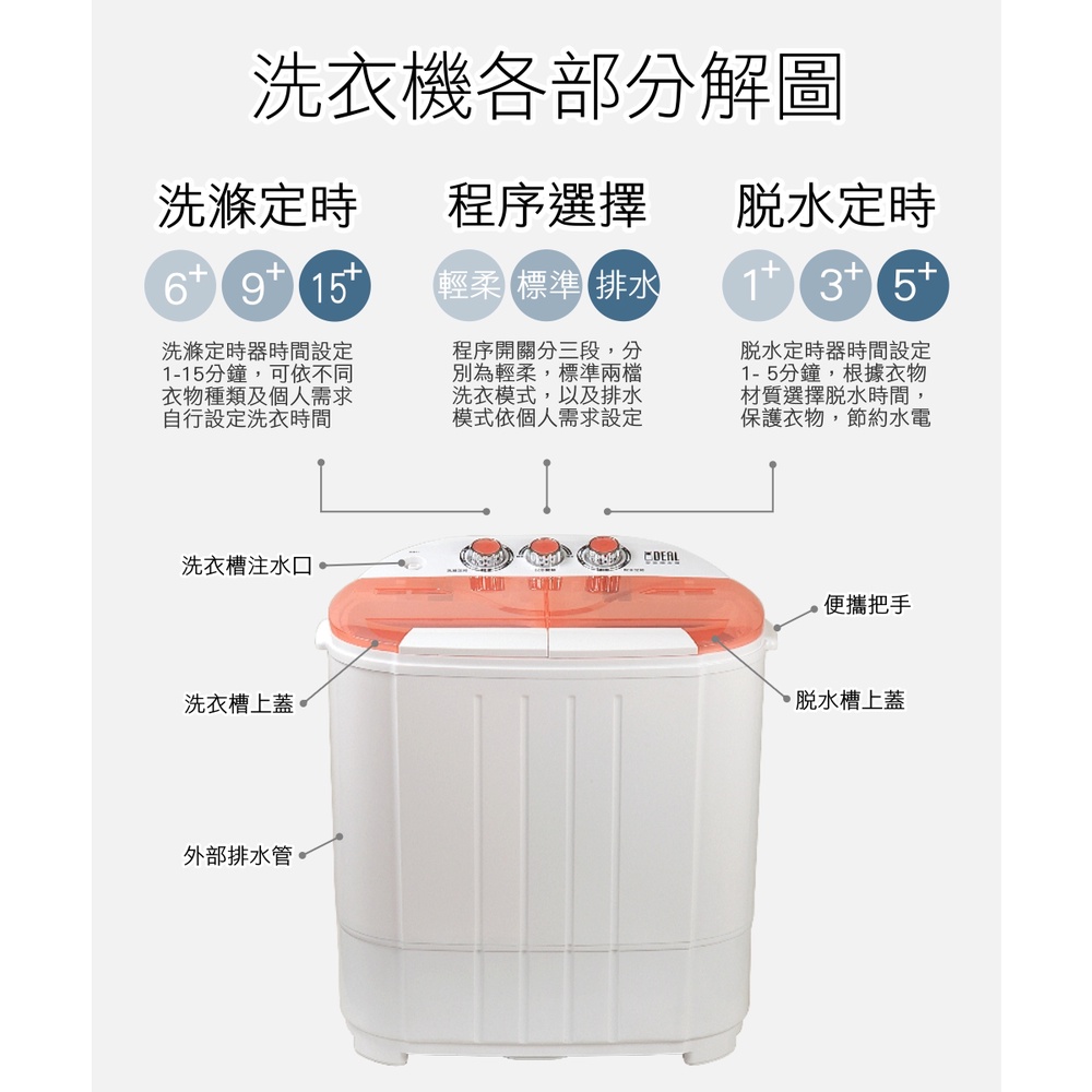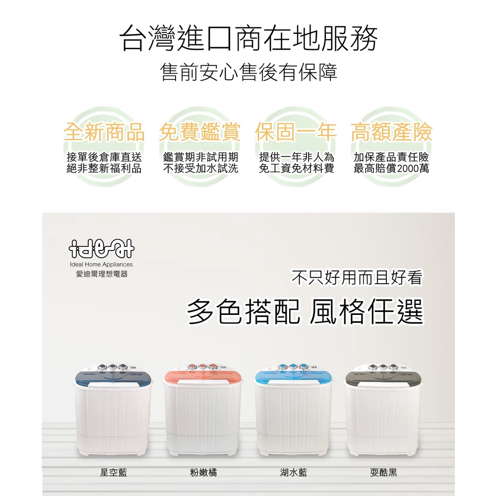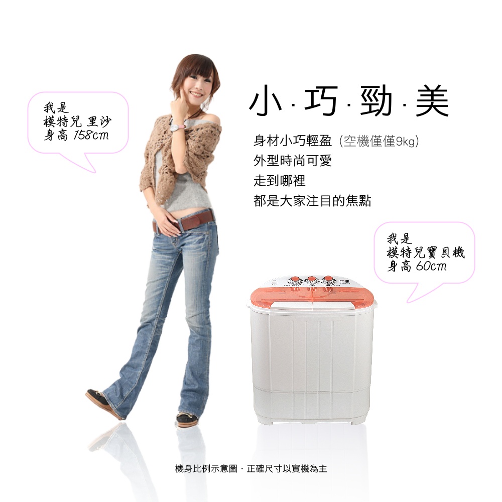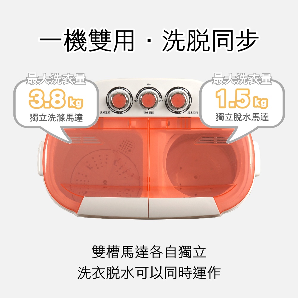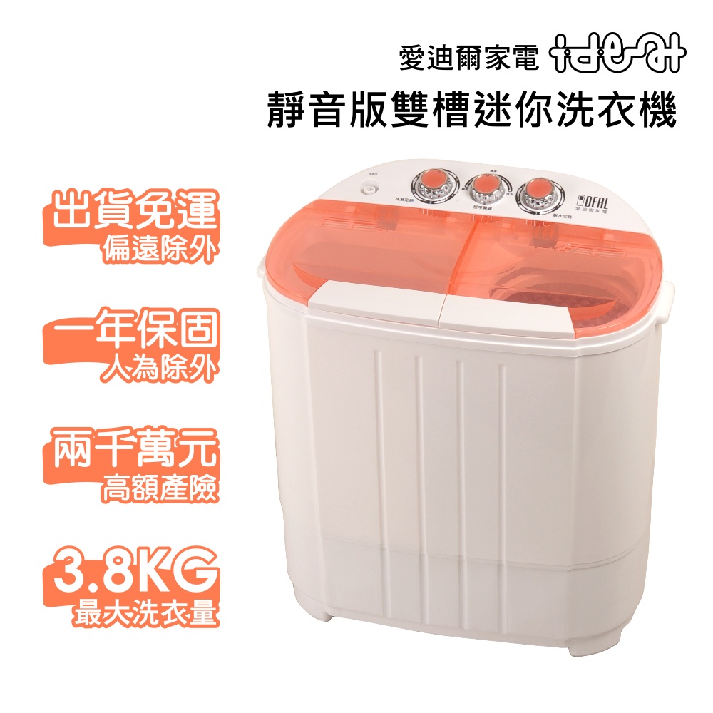 【IDEAL 愛迪爾】雙槽迷你洗衣機-寶貝機(粉嫩橘 E0730P 3.8kg )-僅配送本島-迷你洗衣機
