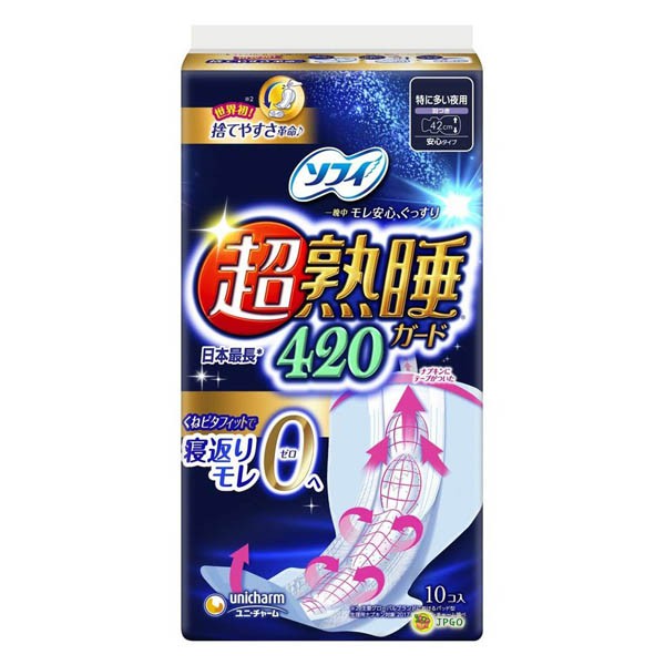 【JPGO】日本製 蘇菲 超熟睡衛生棉 翻身0外漏~夜用量多加強型42cm/10枚