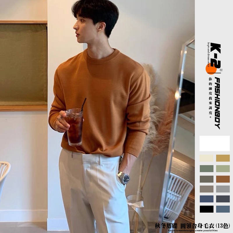【K-2】圓領毛衣 Clean Fit 8色 合身 毛衣 穿搭 內搭 基本款 情侶 保暖 秋冬 多色 針織【A833】