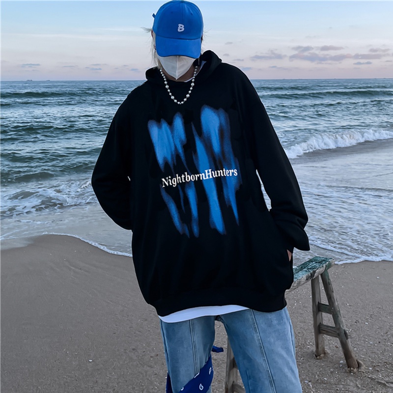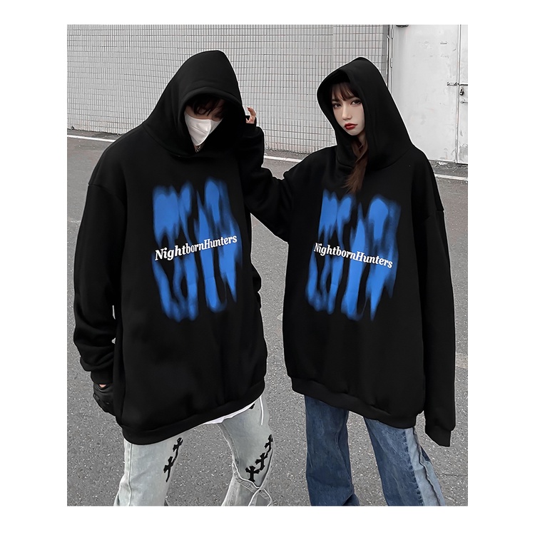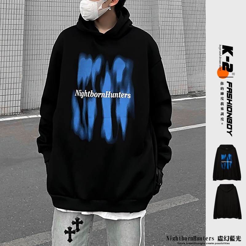 【K-2】NightbornHunters 虛幻 藍光 藍魂 噴漆感 暈染 效果 迷幻 電音 帽T 長袖【BA27】