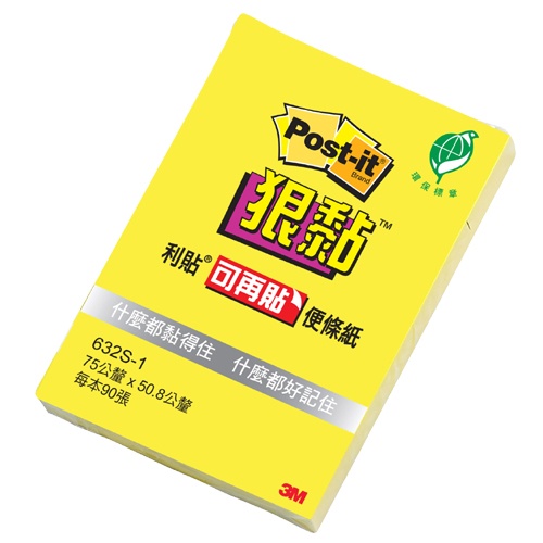 【K.J總務部】3M狠黏 632S 可再貼便條紙單本包_75*50mm 💖11色可選💖