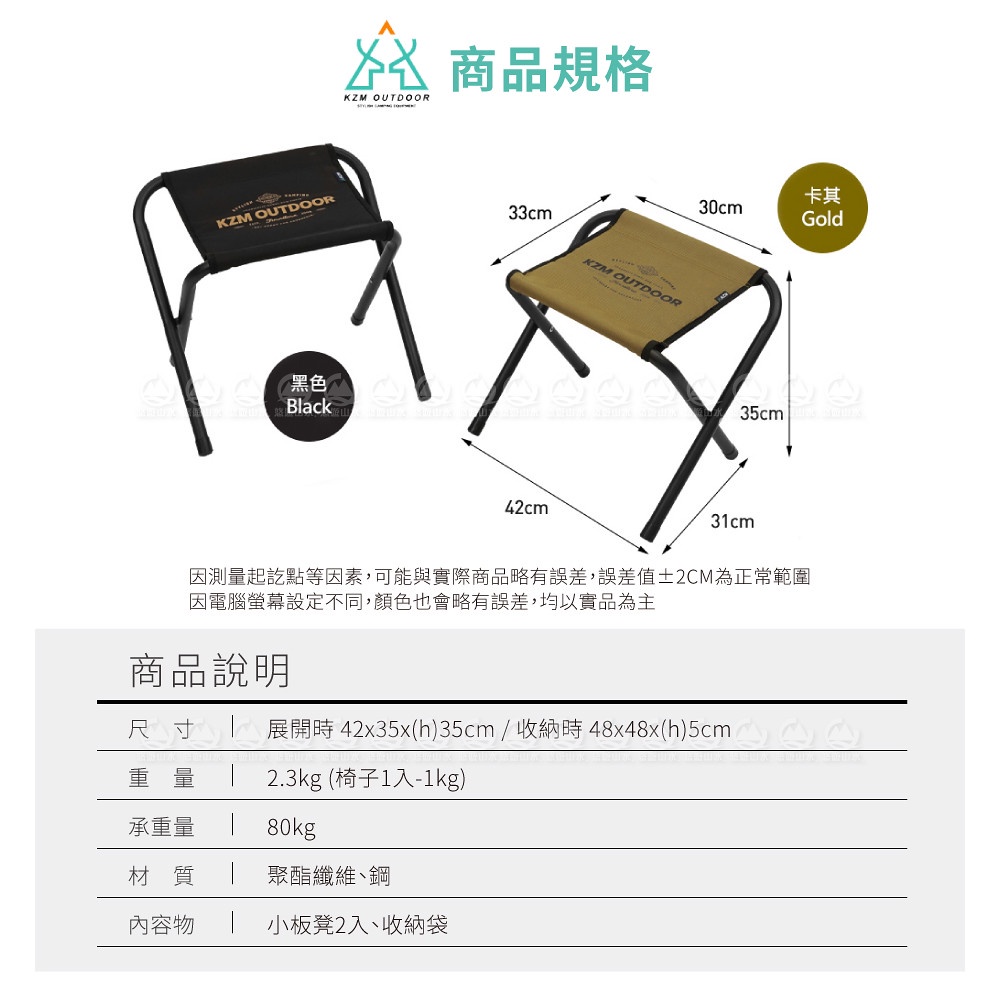 【KAZMI 韓國 KZM 素面小板凳2入《黑/卡其》】K21T1C03/腳凳/露營椅/野餐椅/休閒椅/折疊椅/釣魚椅