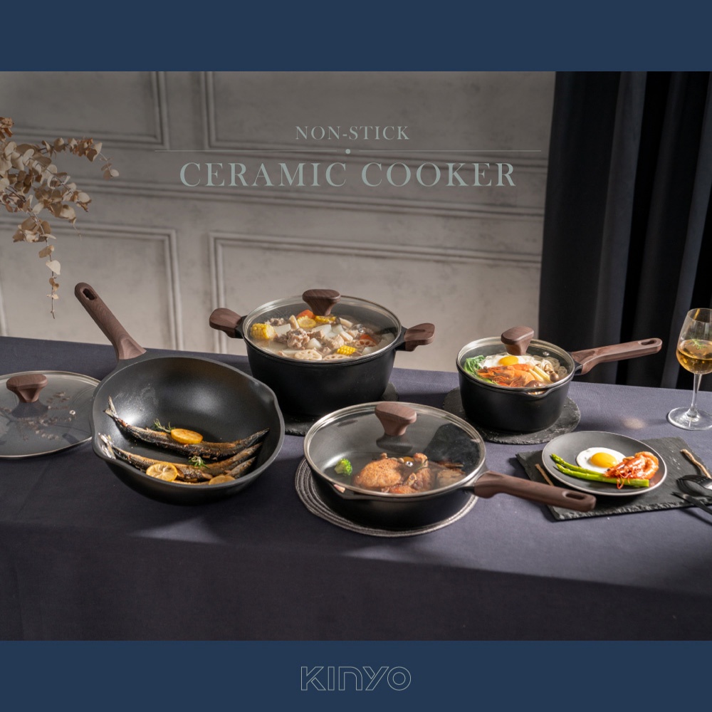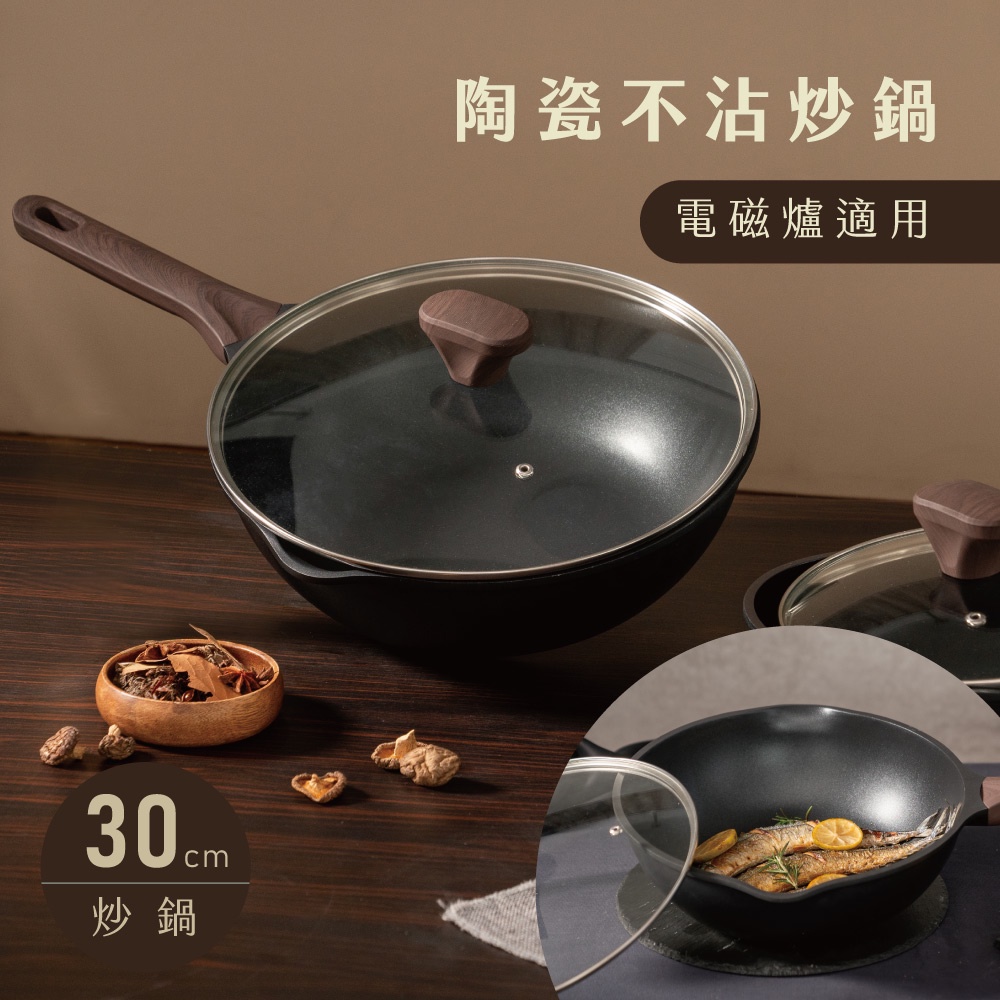 〖KINYO〗 陶瓷不沾炒鍋30cm 黑 (PO)附蓋 炒菜鍋 深炒鍋 萬用不挑爐具 SGS 母親節 禮物