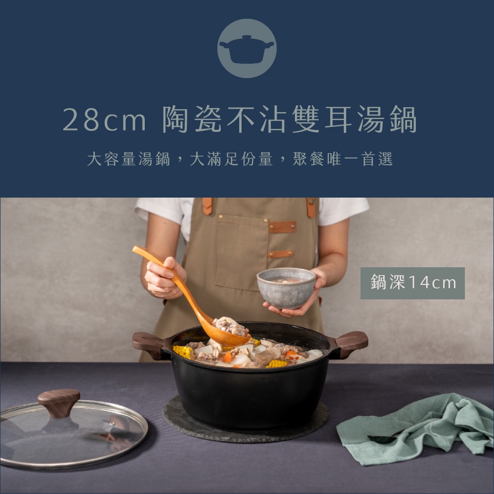 〖KINYO〗 陶瓷雙耳湯鍋28cm 黑 (PO)附蓋 泡麵鍋 雞湯鍋 萬用不挑爐具 母親節 禮物