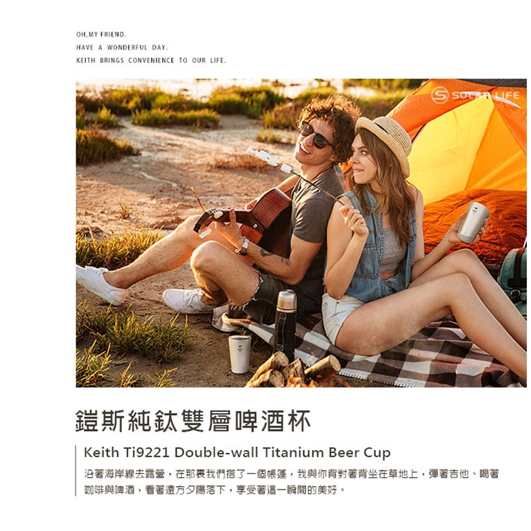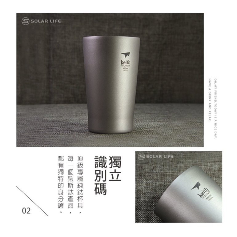【Keith 鎧斯】Ti9221 純鈦雙層啤 酒杯 320ml 鈦酒杯 鈦杯 露營杯具 戶外水杯 環保杯