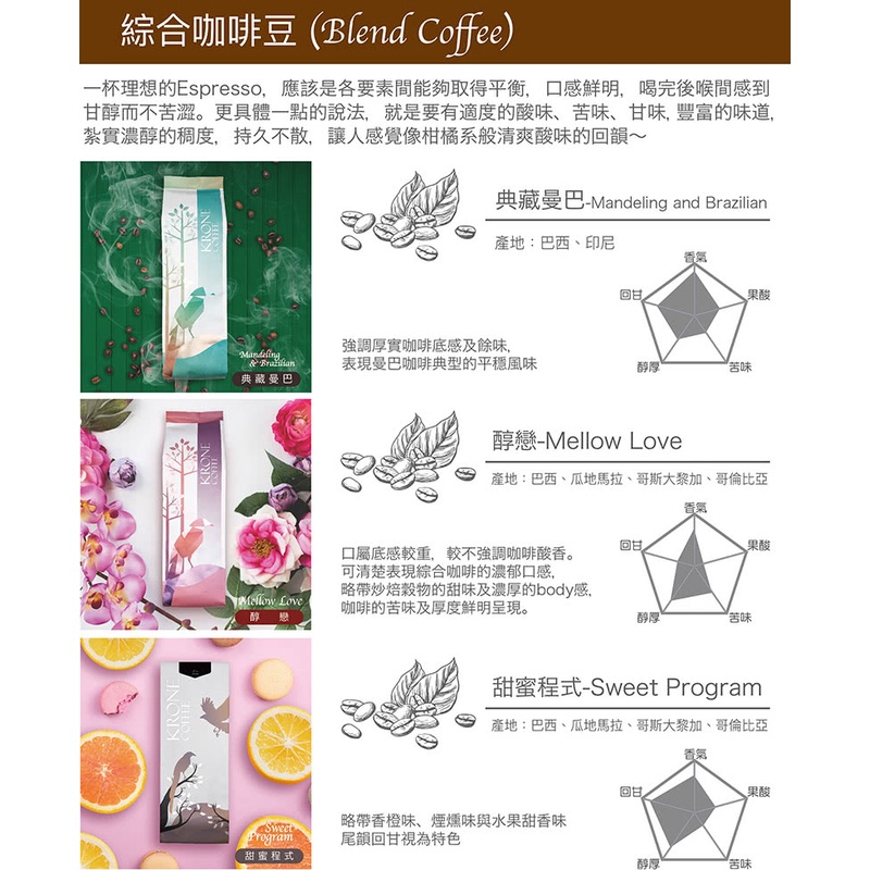 【Krone 皇雀】典藏曼巴咖啡豆|中焙|半磅/227g|嚴選綜合咖啡豆