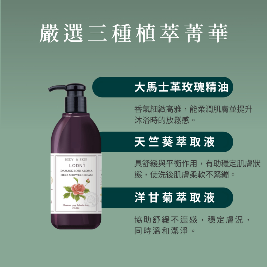 【LODNI蘿德妮】大馬士革玫瑰精油沐浴露(300 ml)|中性肌膚 肌膚滋養 保持肌膚彈性