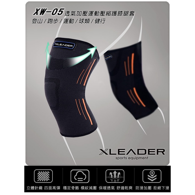 【Leader X】XW-05 透氣加壓 運動壓縮護膝腿套 1只入 | 防護升級 膝部防護 (台灣24h出貨)