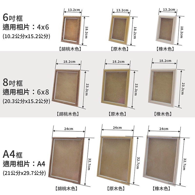 【LifeShopping】簡約木紋桌框 6吋/8吋/A4相框【現貨】胡桃木色/橡木色/原木色 居家布置 交換禮物