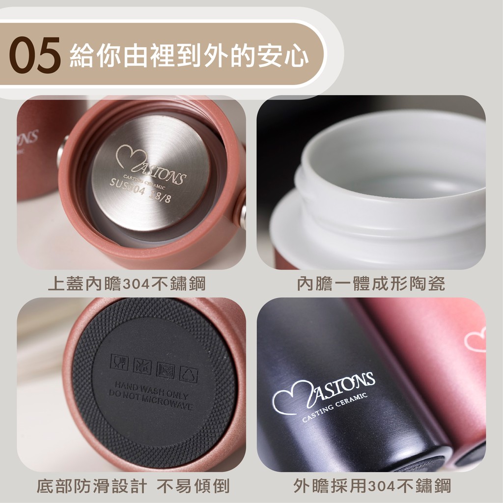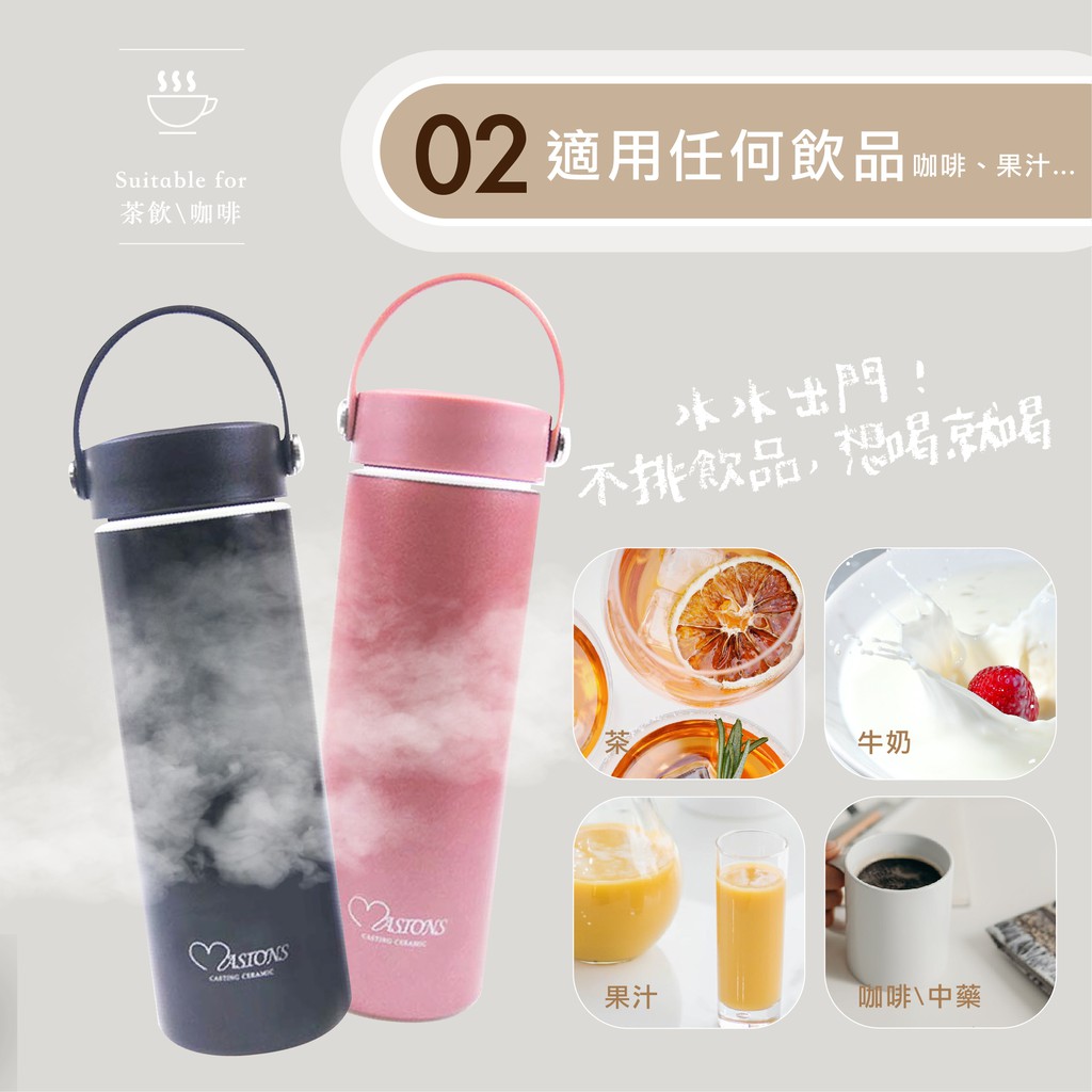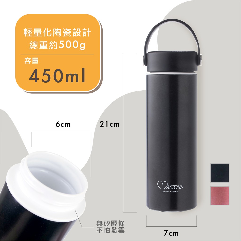 【MASIONS 美心】超真空鑄造陶瓷保溫杯(450 ml 附提把)