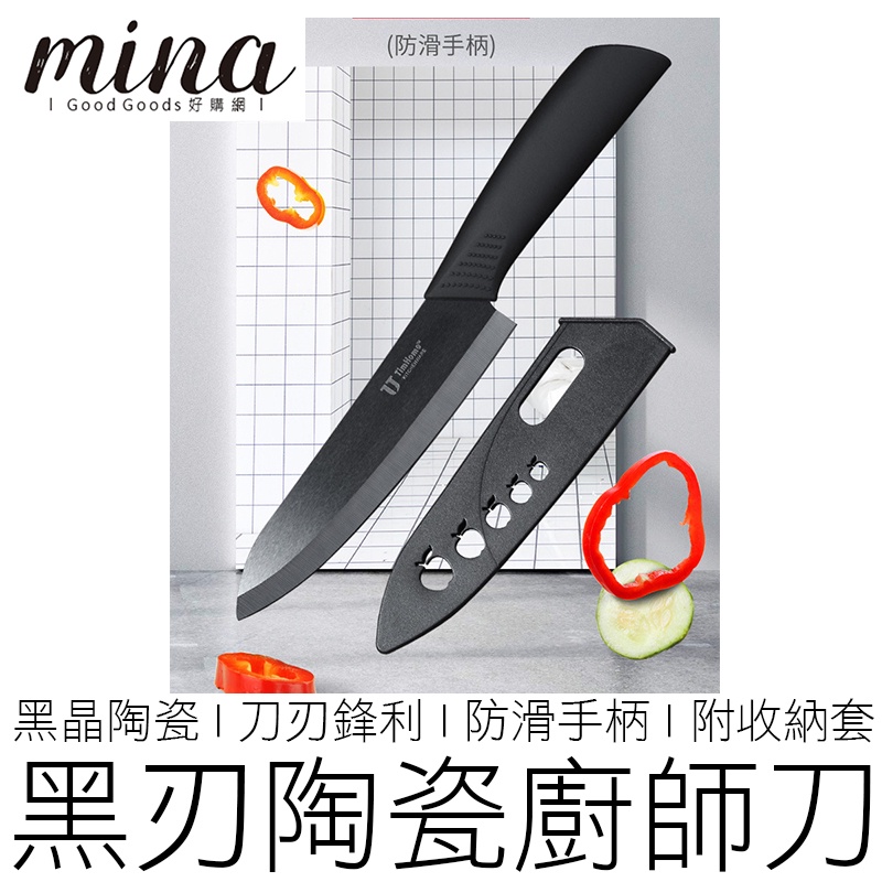 【MINA露營趣】(6吋) 黑晶陶瓷廚師刀 附刀套 陶瓷刀 料理刀 菜刀 廚師刀 切片刀 刀 廚具 刀具