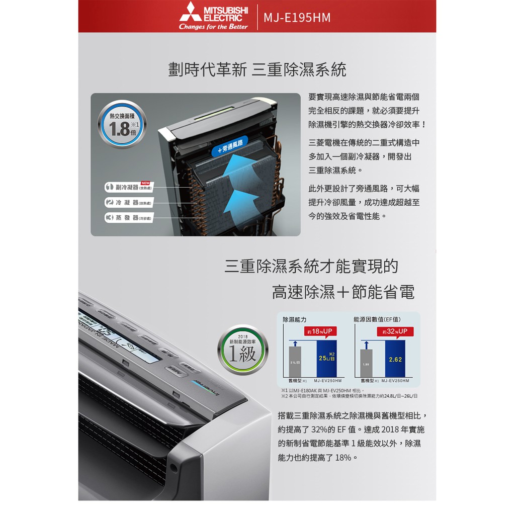 【MITSUBISHI三菱電機】日製19公升除濕機 MJ-E190HT-TW