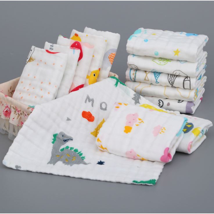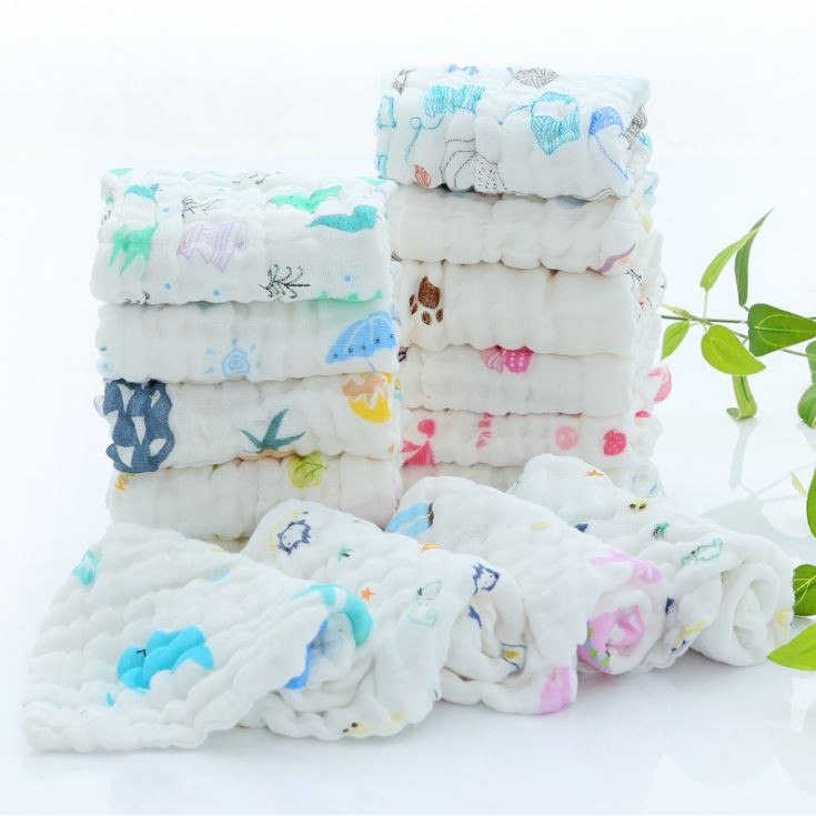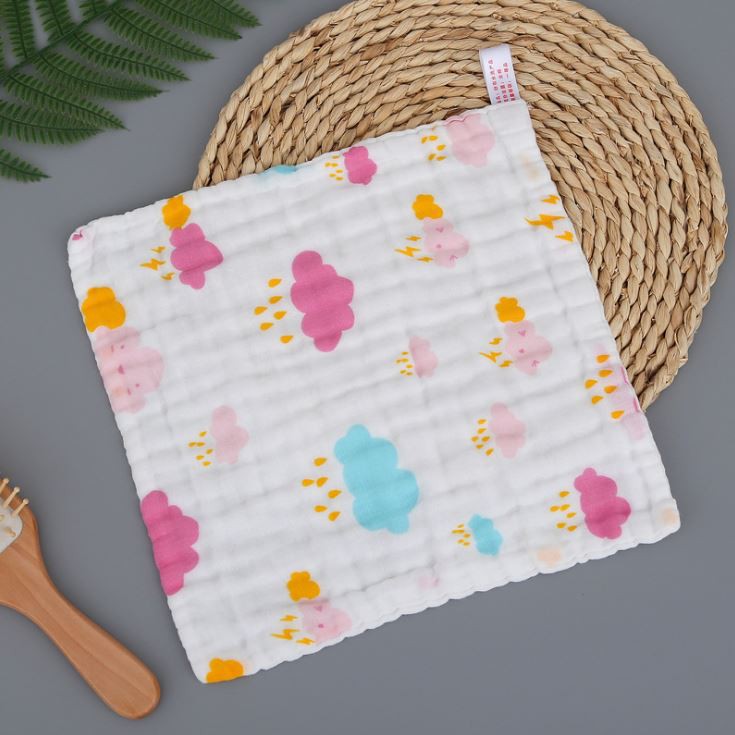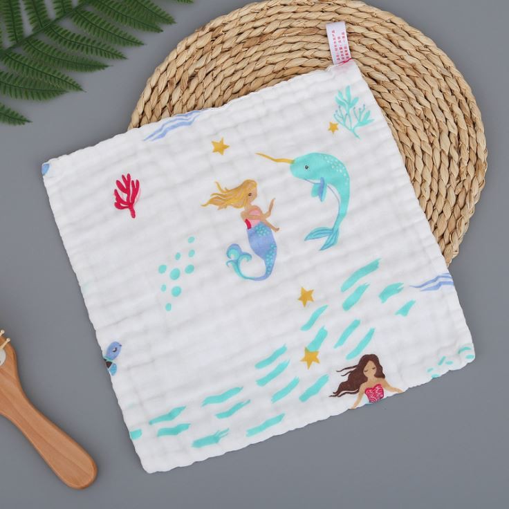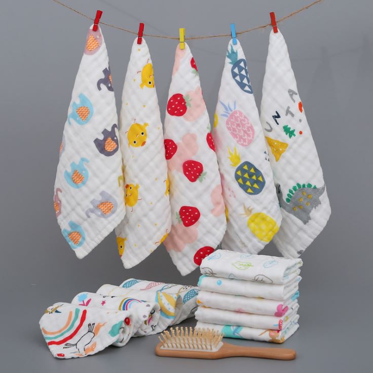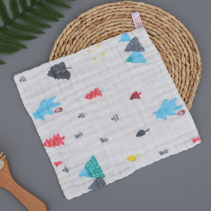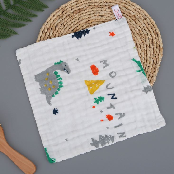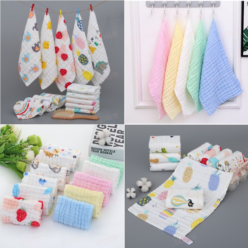 【MJ萌揪】台灣現貨~可愛圖案 純棉純色六層紗布毛巾 方巾泡泡巾純棉泡泡毛巾六層紗布兒童小方巾 兒童擦手巾 兒童毛巾