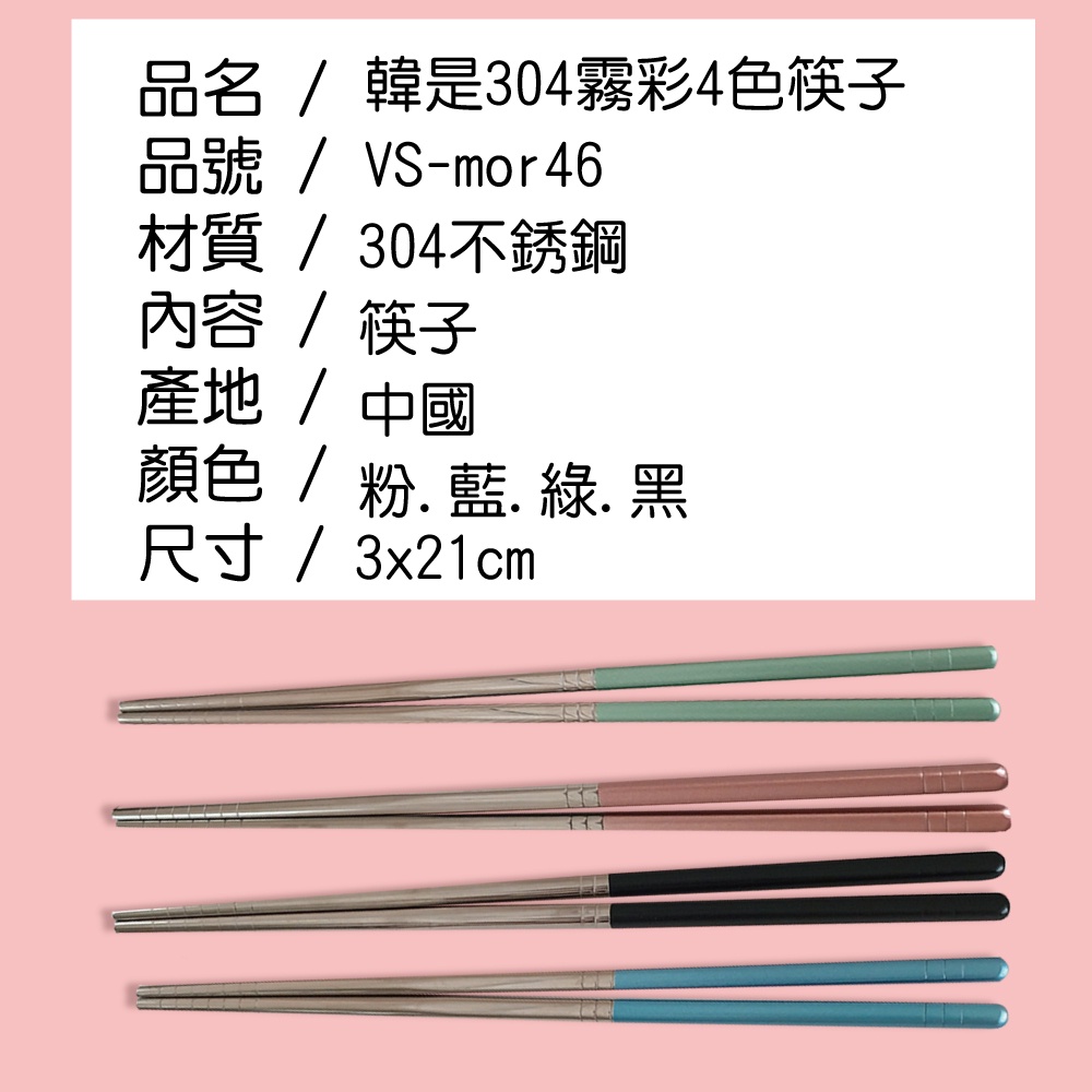【MORRIES 莫利仕】韓式304不鏽鋼彩霧筷子VS-MOR-46