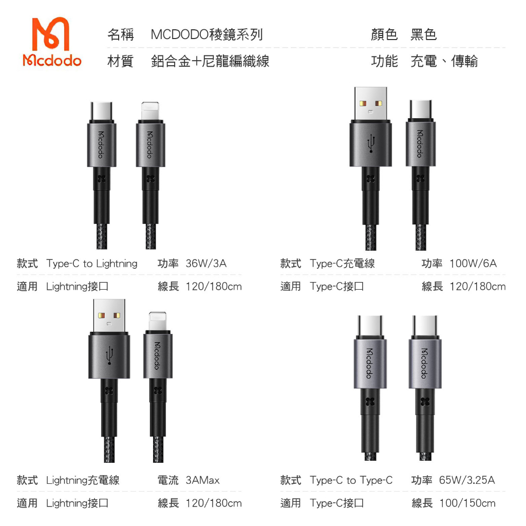 【Mcdodo麥多多】稜鏡系列充電線 適用Lightning Type-C PD快充線 蘋果手機平板可用 編織傳輸線