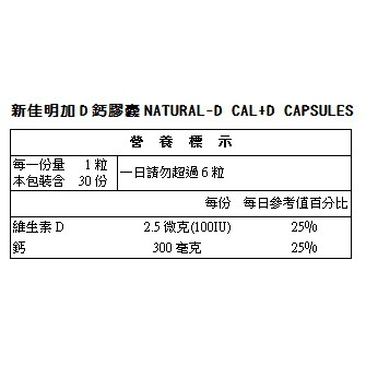 【NATURAL-D】新佳明加D鈣膠囊 1350毫克/粒 CAL+D CAPSULES