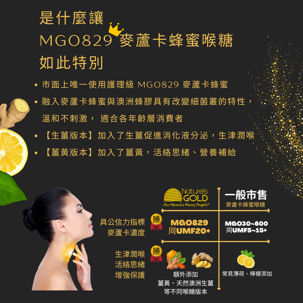 【Nature's Gold】澳洲麥蘆卡蜂蜜喉糖(MGO829,30入)【台灣唯一官方授權代理】