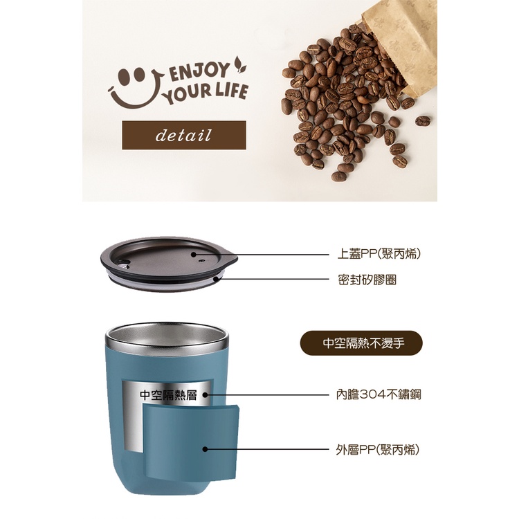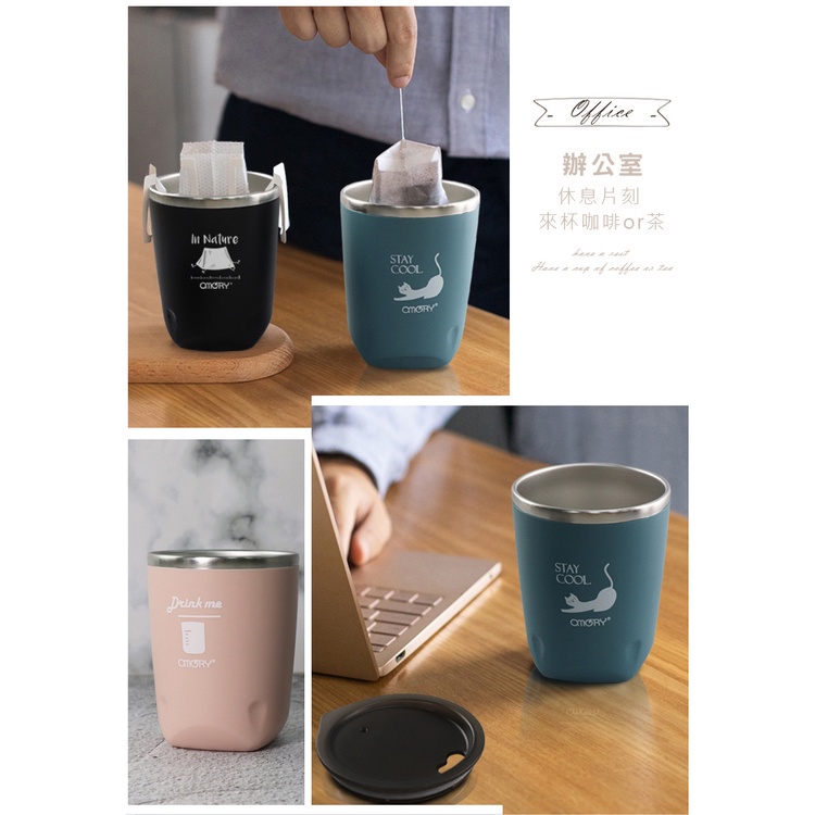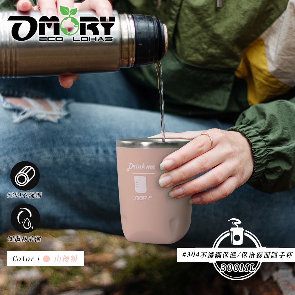 【OMORY】巧口杯 #304不鏽鋼保溫/保冷霧面隨手杯/水杯300ml(附杯蓋)
