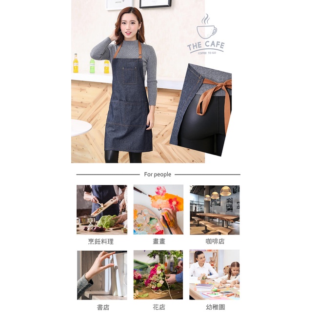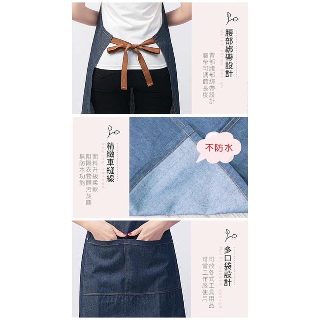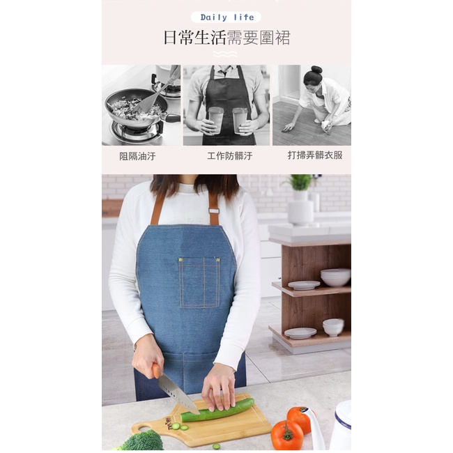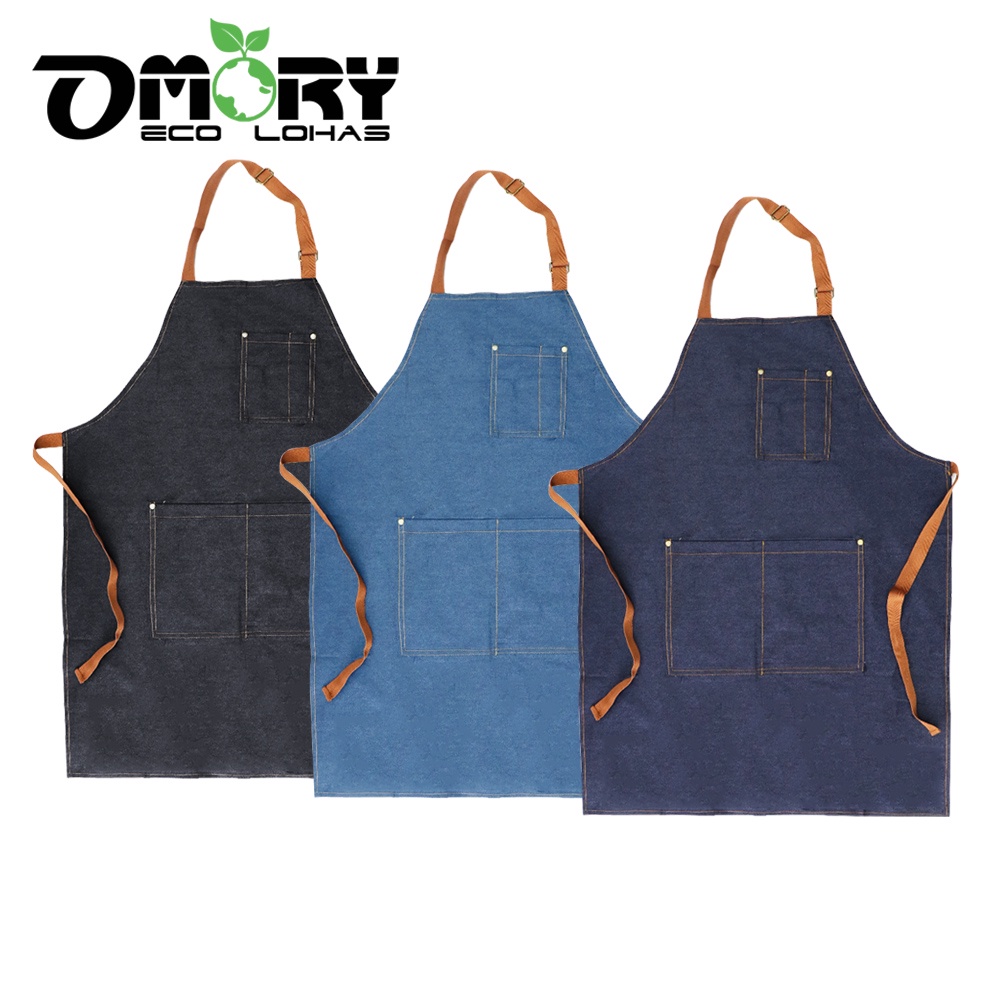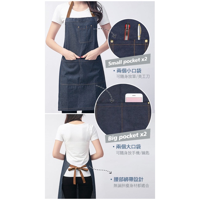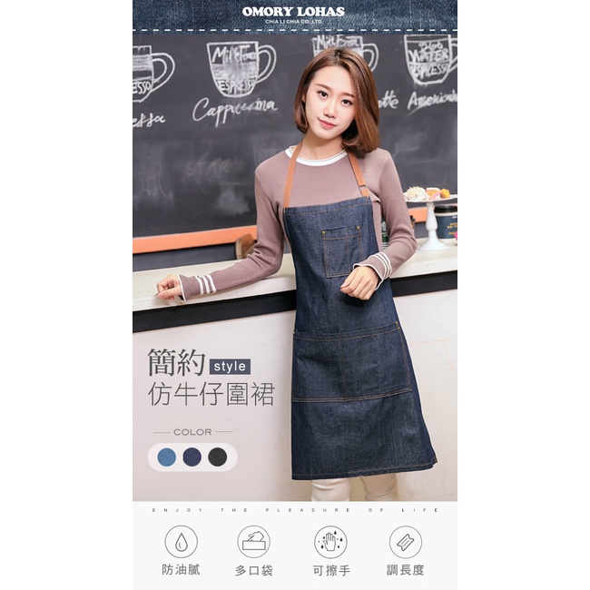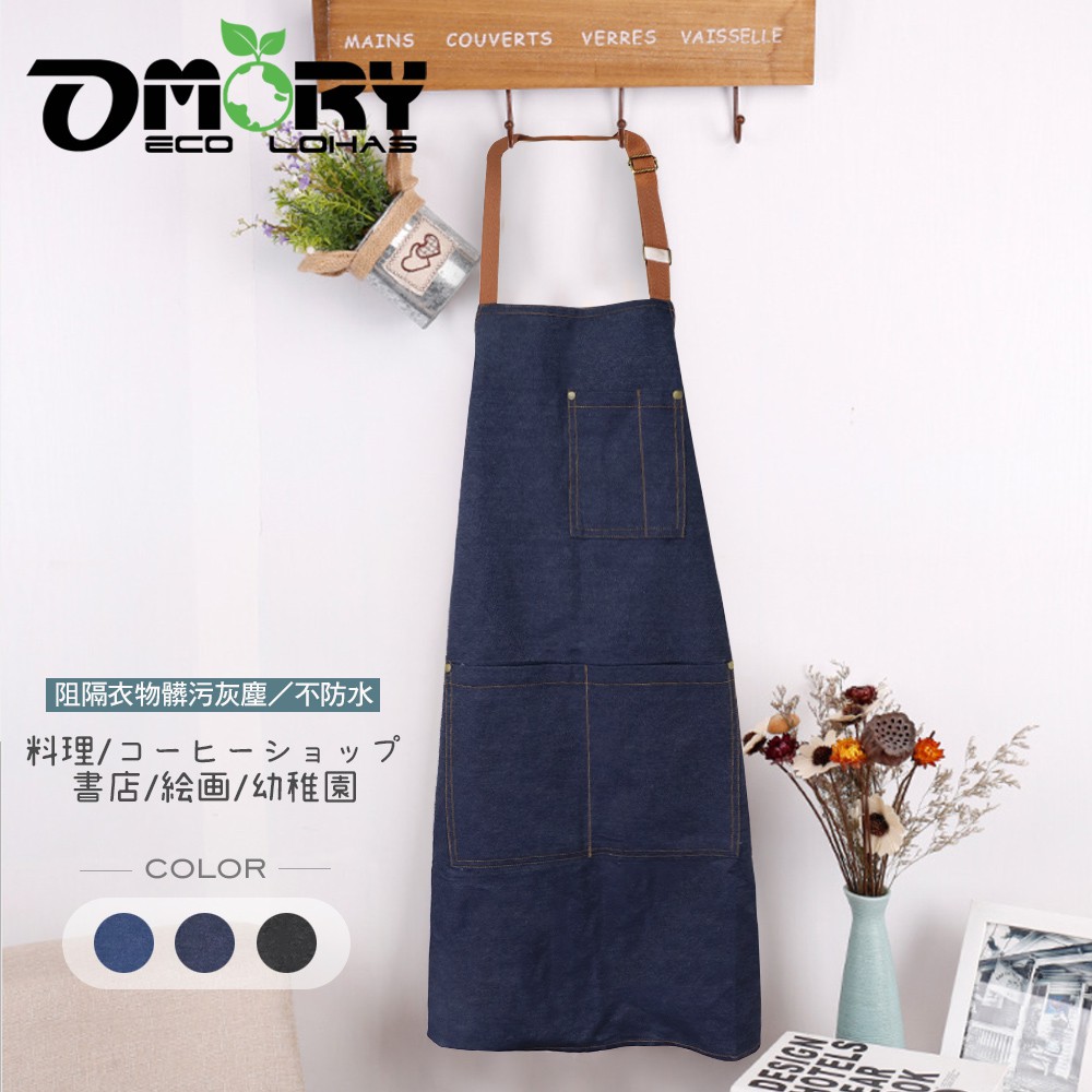 【OMORY】簡約仿牛仔圍裙 牛仔圍裙 工作圍裙 防髒污圍裙 文青圍裙 幼兒園老師圍裙- 59x79cm