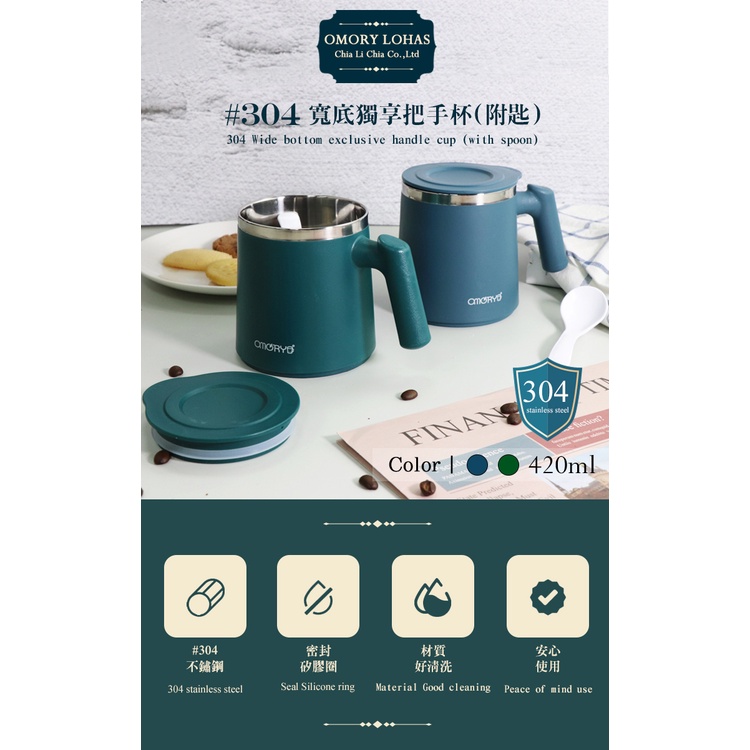 【OMORY】#304不鏽鋼寬底獨享把手杯 420ml