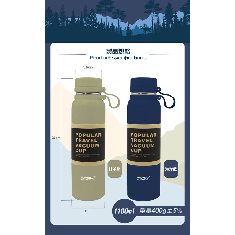 【OMORY】304不鏽鋼噴塑保溫保冷瓶/水壺-1100ml