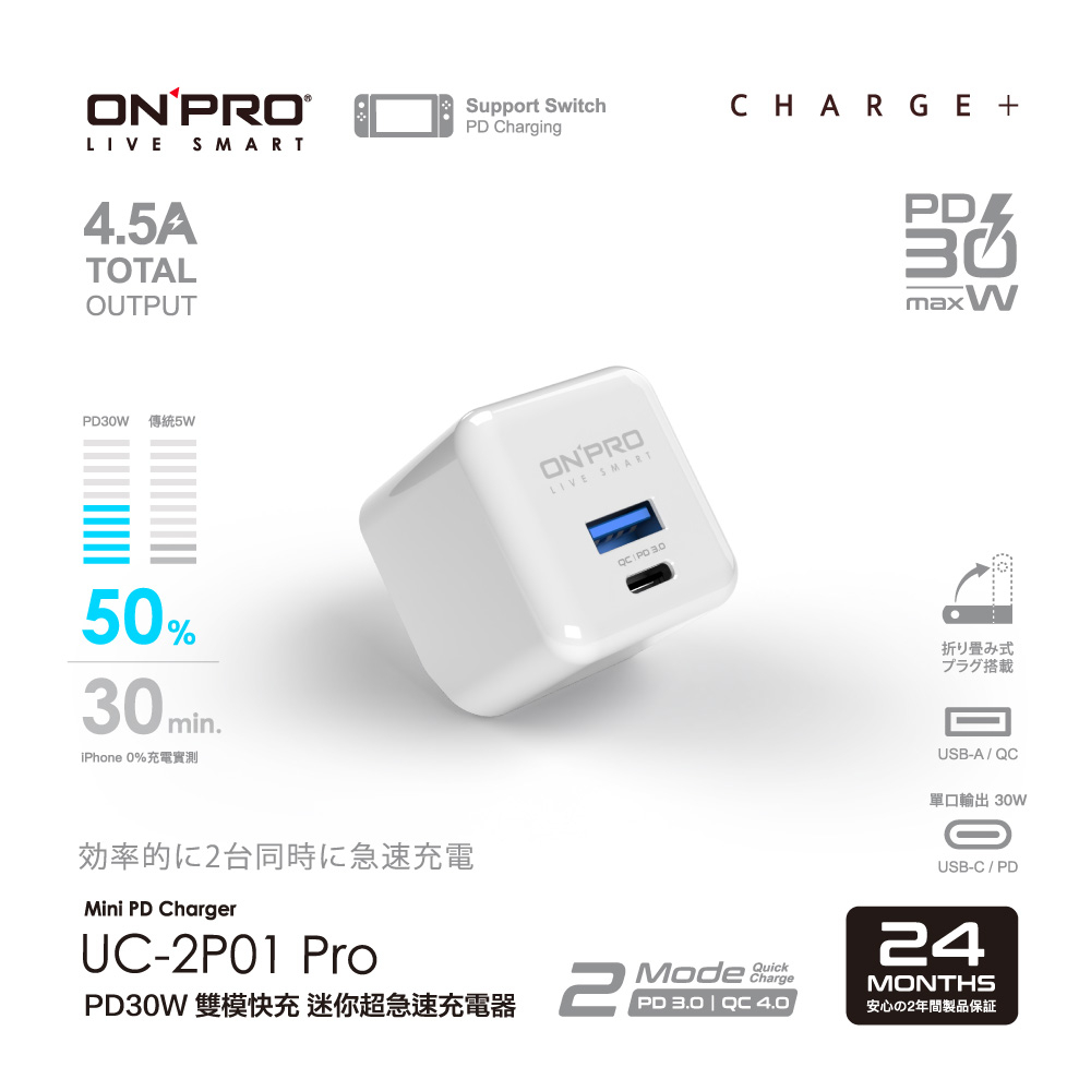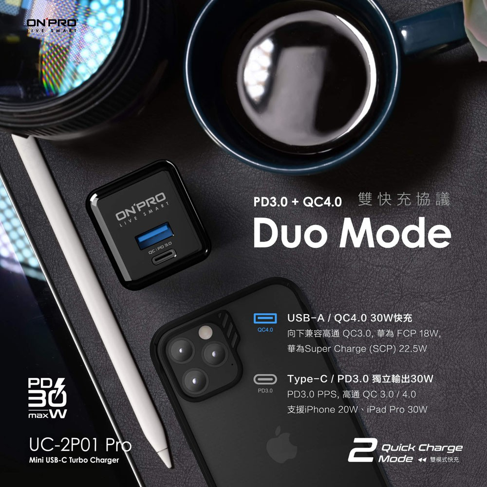 【ONPRO|30W雙孔快充頭】迷你超急速PD充電器 QC Type-C UC-2P01 PRO_Kimi極美職人推薦