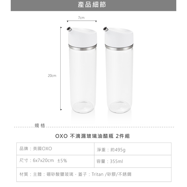 【OXO】不滴漏玻璃油醋瓶 2件組-355ml 醬油瓶|分裝瓶 |油醋瓶 |原廠公司貨