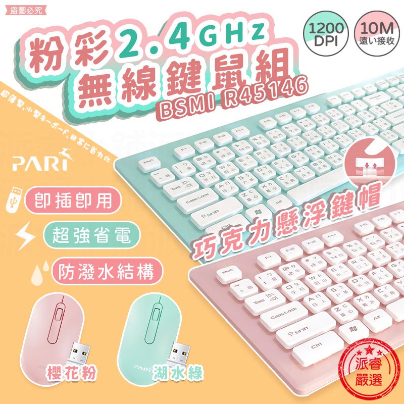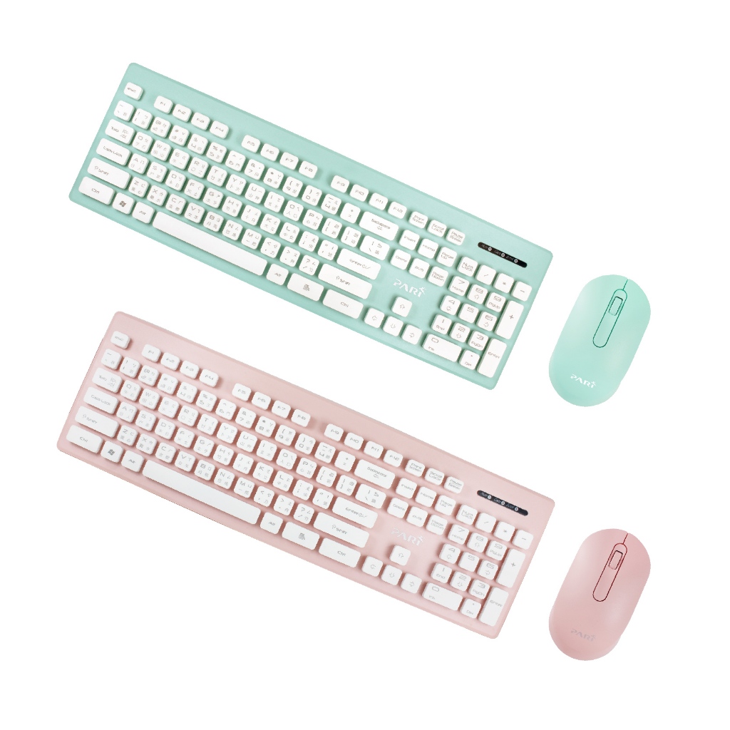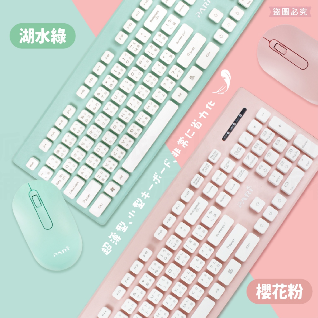 【PARI粉彩無線鍵鼠組】鍵盤滑鼠組 防潑水 10M距離 無線鍵盤 無線滑鼠 湖水綠 櫻花粉【LD663】