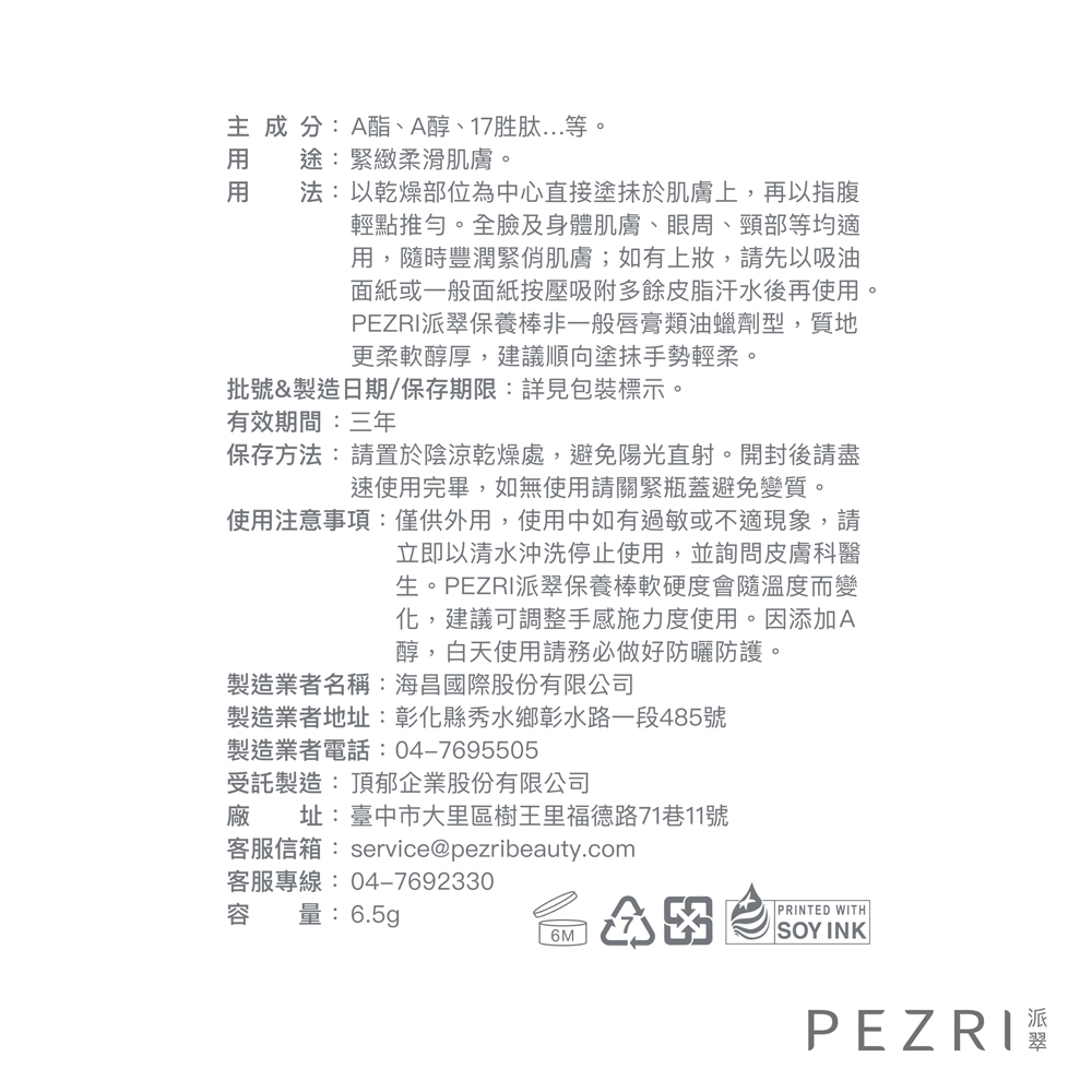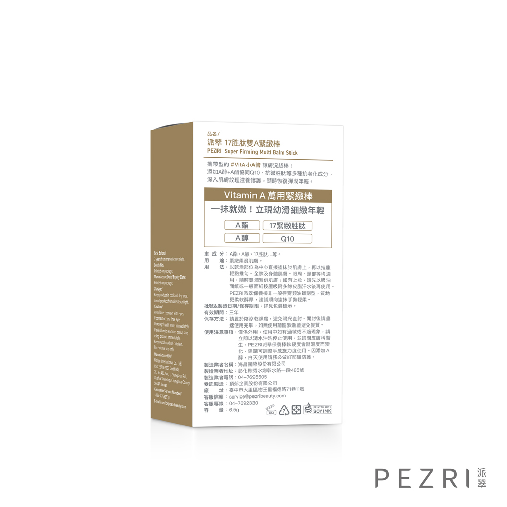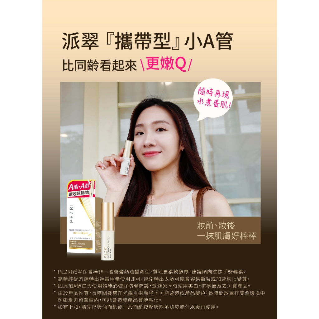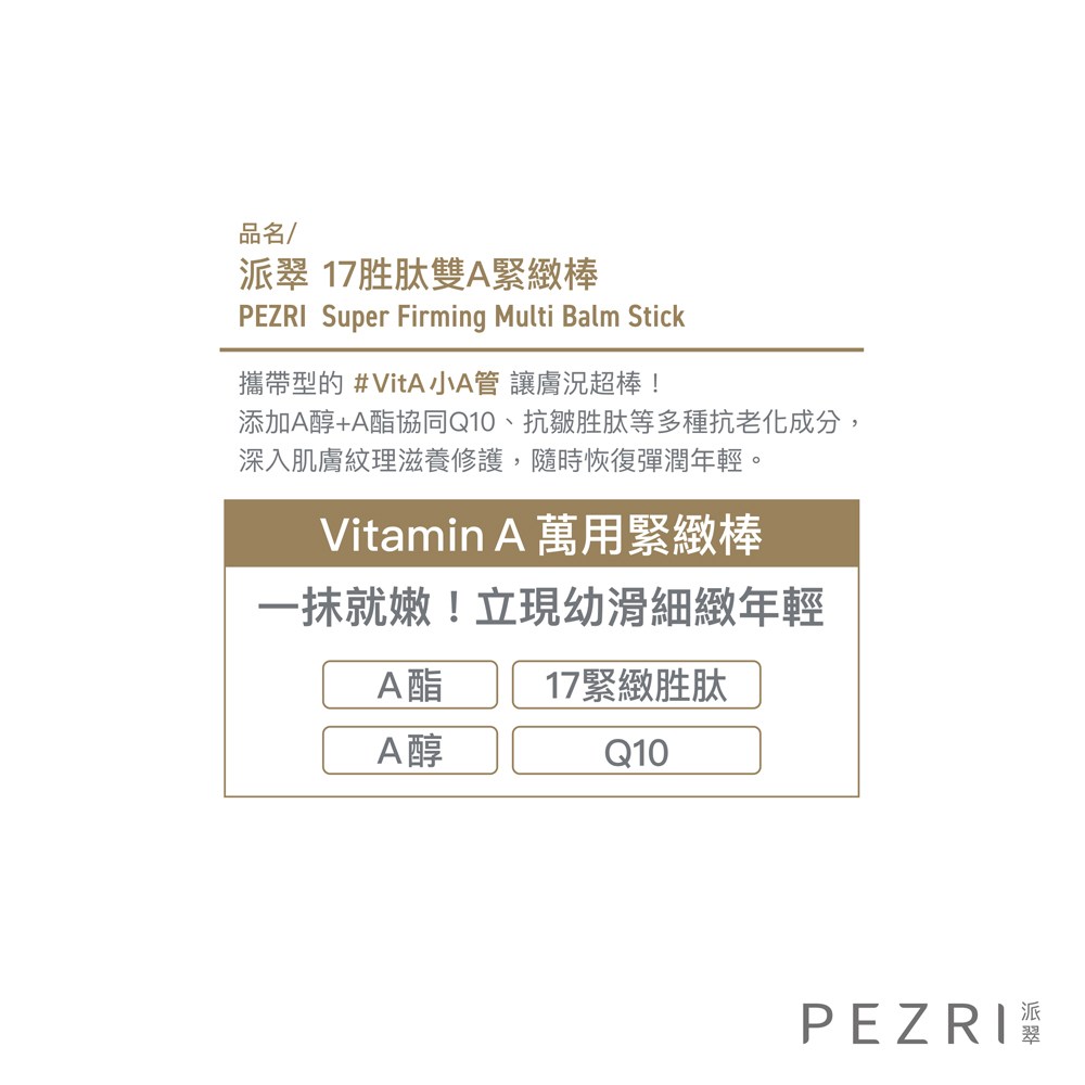 【PEZRI派翠】17胜肽雙A緊緻棒6.5g【盒損良品:效期至2026年7月】│攜帶型的A醇、A酯│旅行必備小金管│派翠