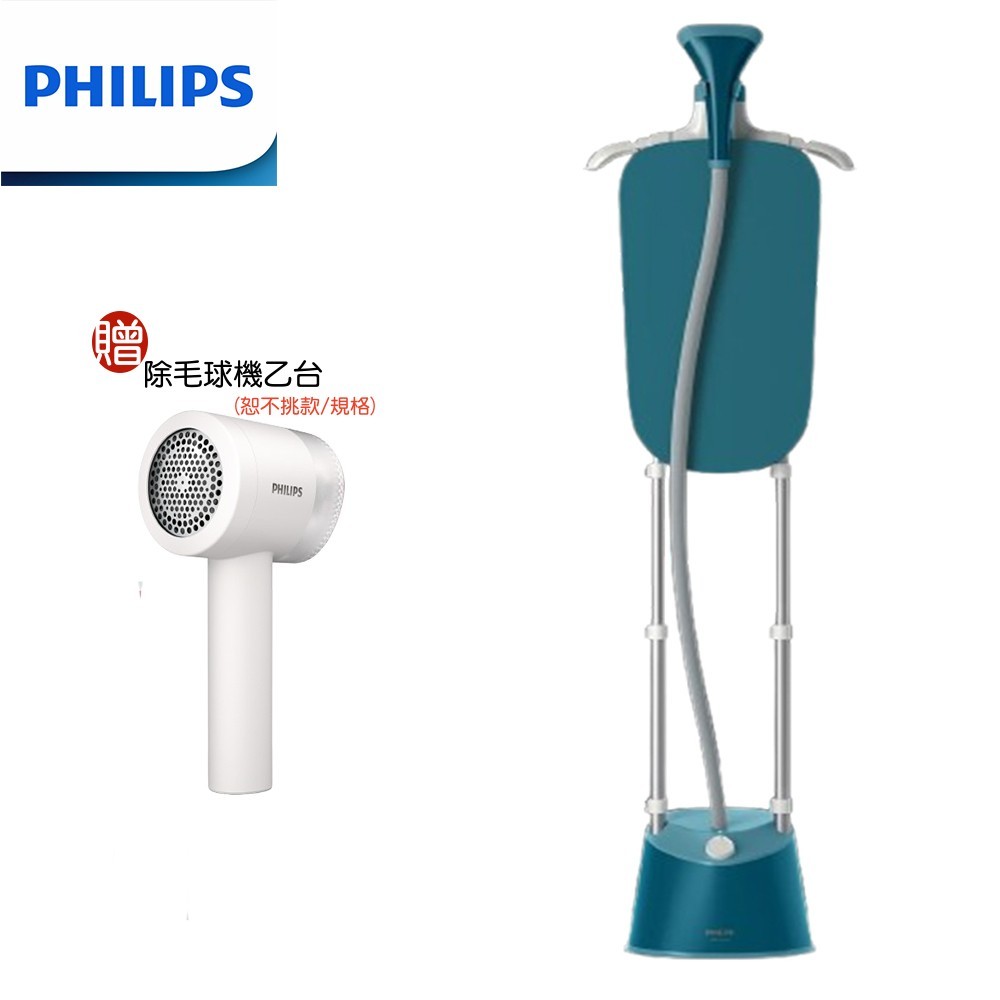 【PHILIPS 飛利浦】好禮二選一 直立式雙桿3段蒸氣掛燙機-孔雀藍 專業熨燙 限量商品