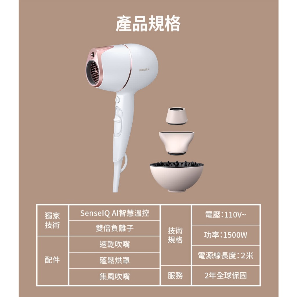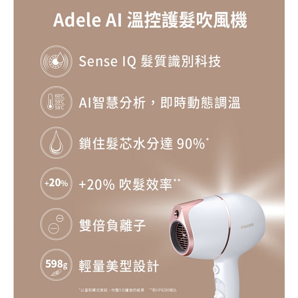 【PHILIPS 飛利浦】好禮四選一 BHD628 Adele AI頂級智能溫控輕量護髮吹風機 附原廠三大配件 交換禮物