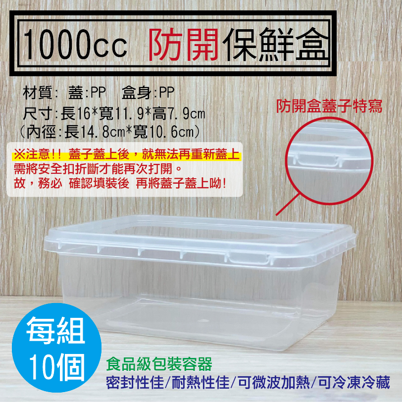 【PP防開保鮮盒+PP蓋,1L(1000c.c)】10組,PP防開盒.冰淇淋盒.食品保鮮盒,可冷藏冷凍.防開收納盒防開盒