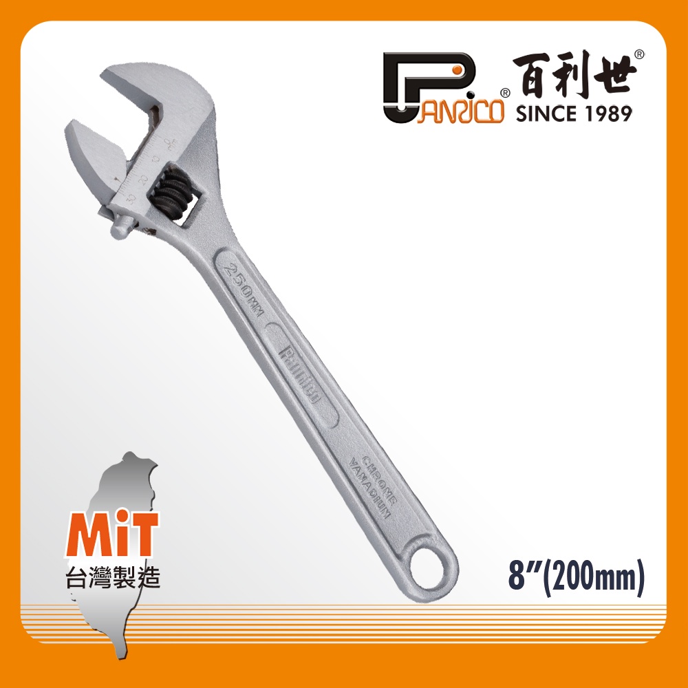 【Panrico 百利世】8吋加大開口活動扳手/防滑牙刻度(台灣製造)|ASTool 亞仕托