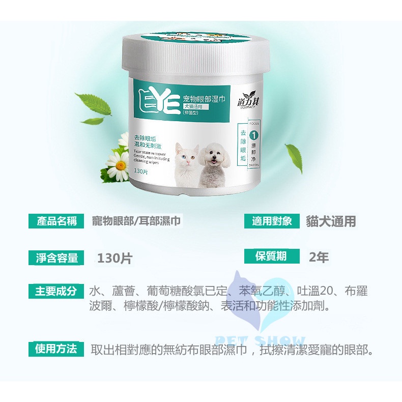 【Pet Show】寵物濕巾 寵物眼部濕巾 耳部濕巾 貓咪清潔 濕紙巾 去眼垢 寵物去淚痕濕巾 祛淚痕 貓狗眼睛濕巾