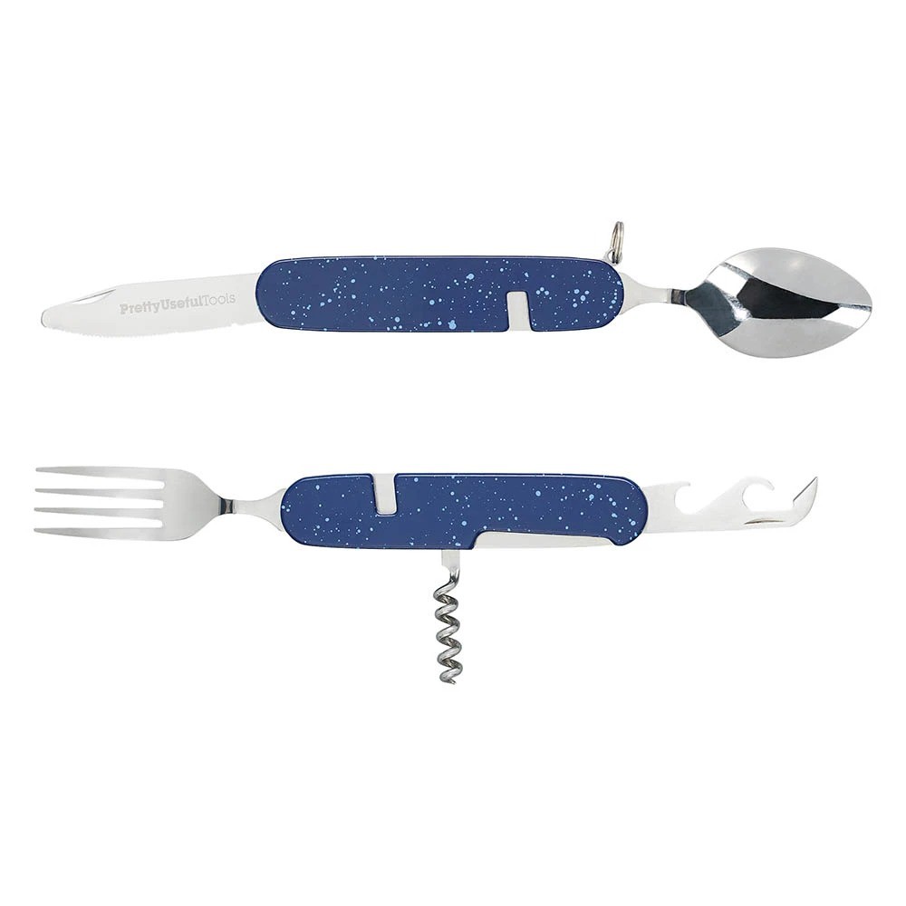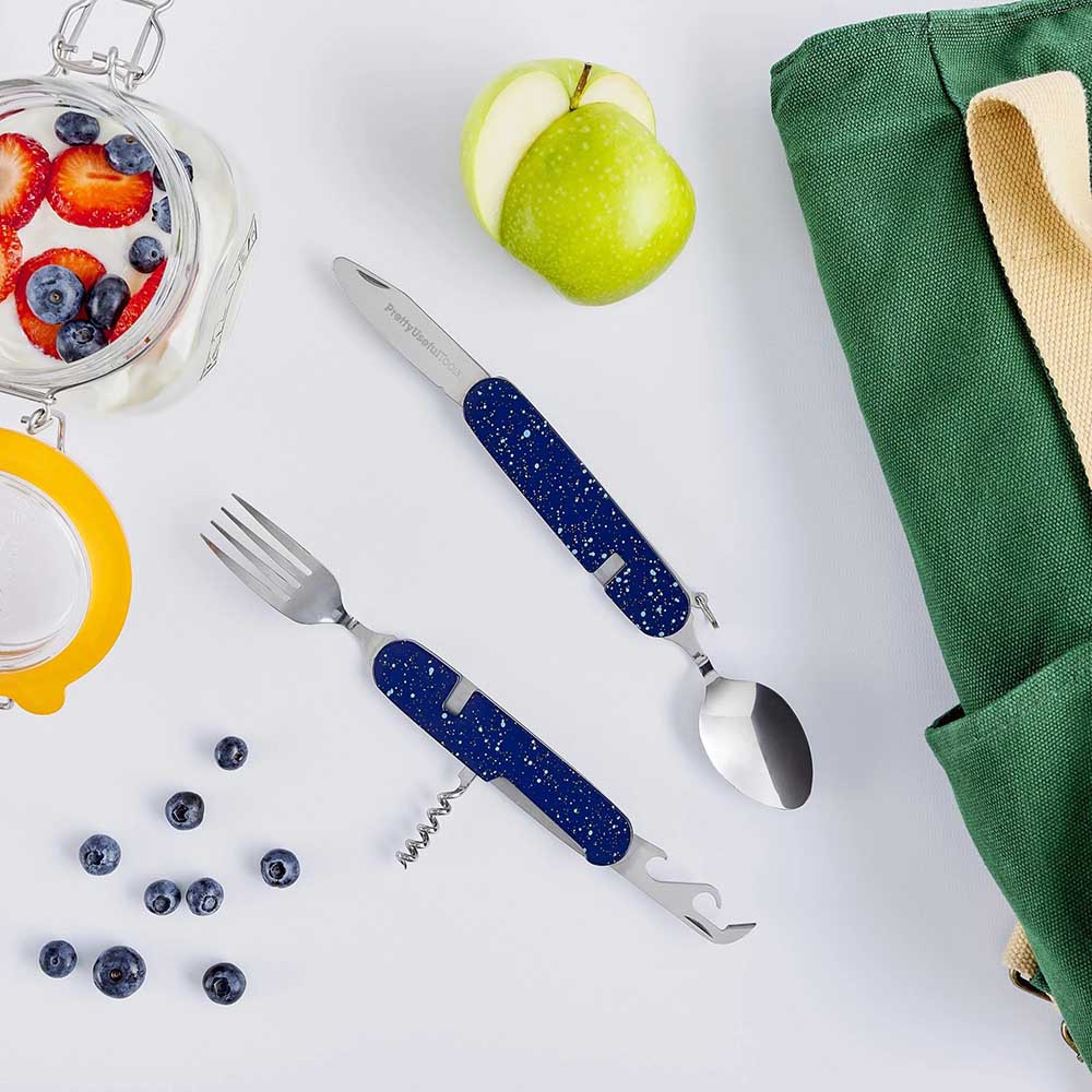 【Pretty Useful Tools】(限量)戶外露營刀叉多功能工具組-噴砂午夜藍