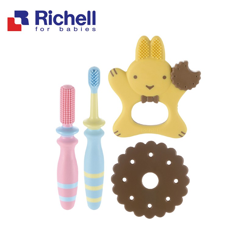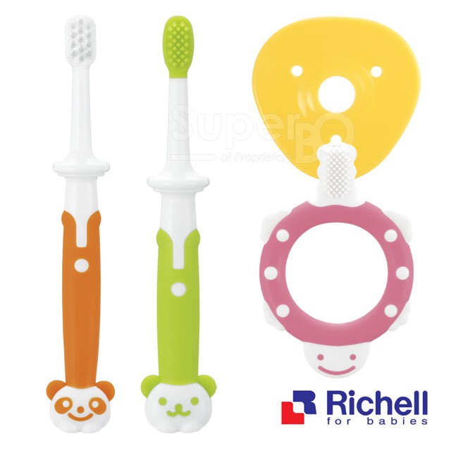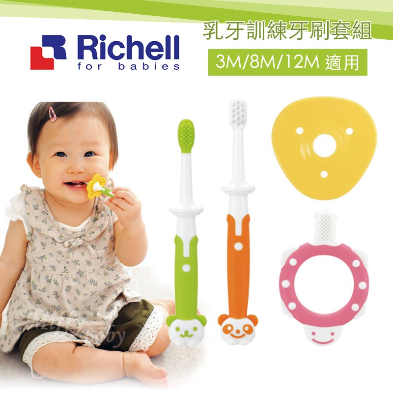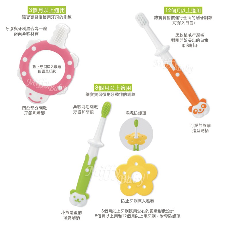 【Richell 利其爾】日本乳牙訓練牙刷(3m~12m)幼兒牙刷 學習牙刷 齒間刷 指套牙刷-MiffyBaby