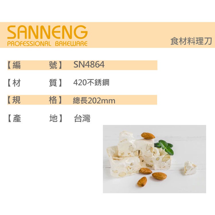 【SANNENG 三能官方】食材料理刀 切糖刀 牛軋糖刀 SN4864 SN4865