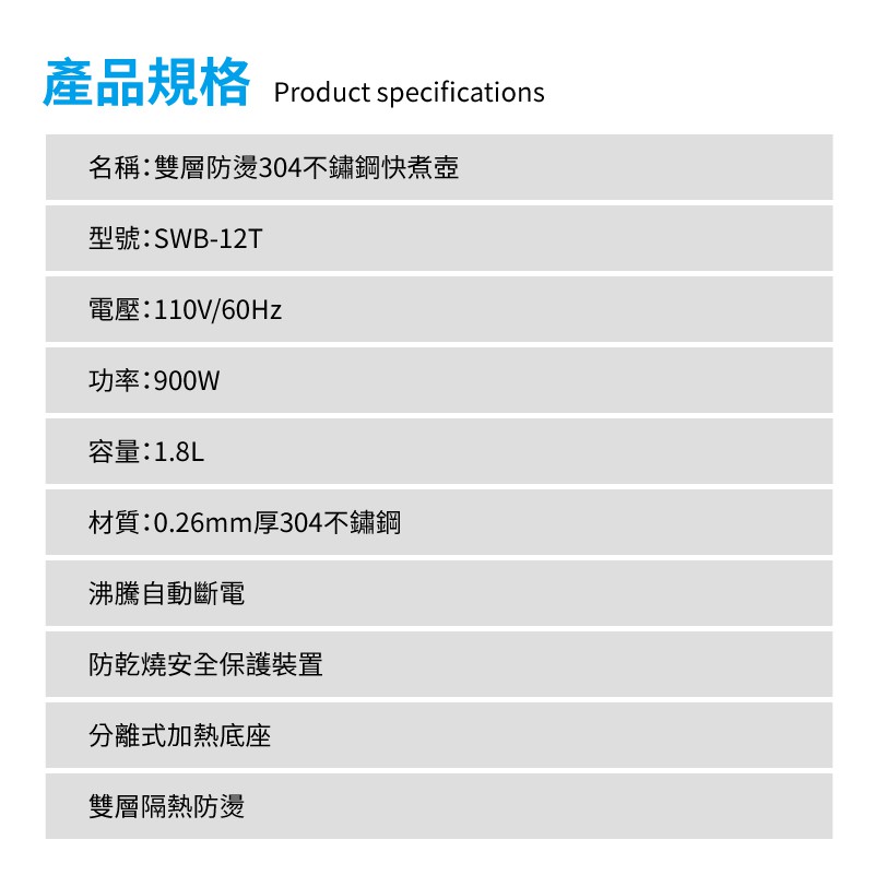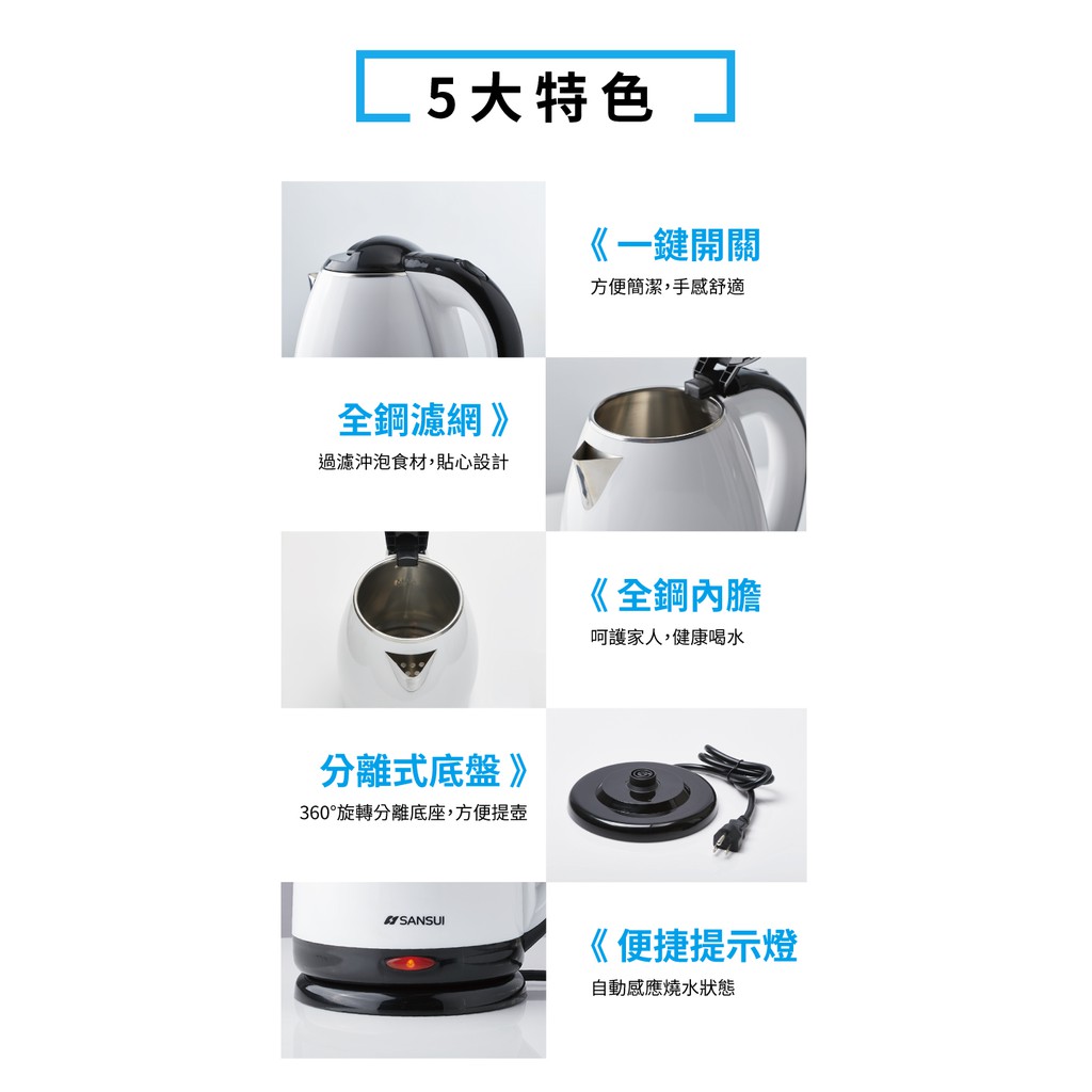 【SANSUI山水】[福利品] 1.8L快煮壺 SWB-12T 雙層防燙 304不銹鋼快煮壺 電茶壺 熱水瓶