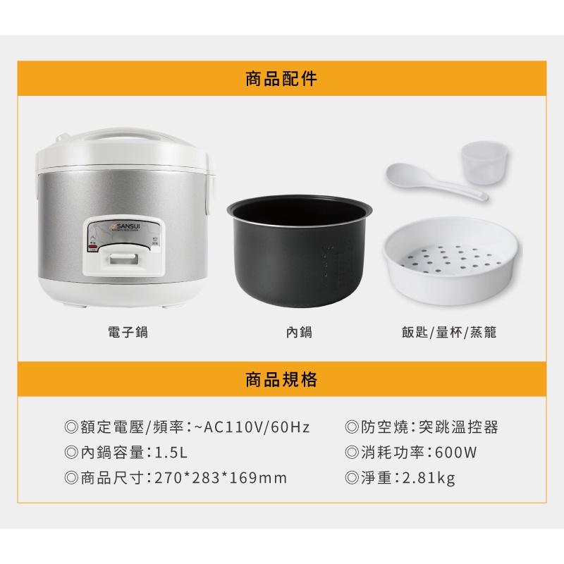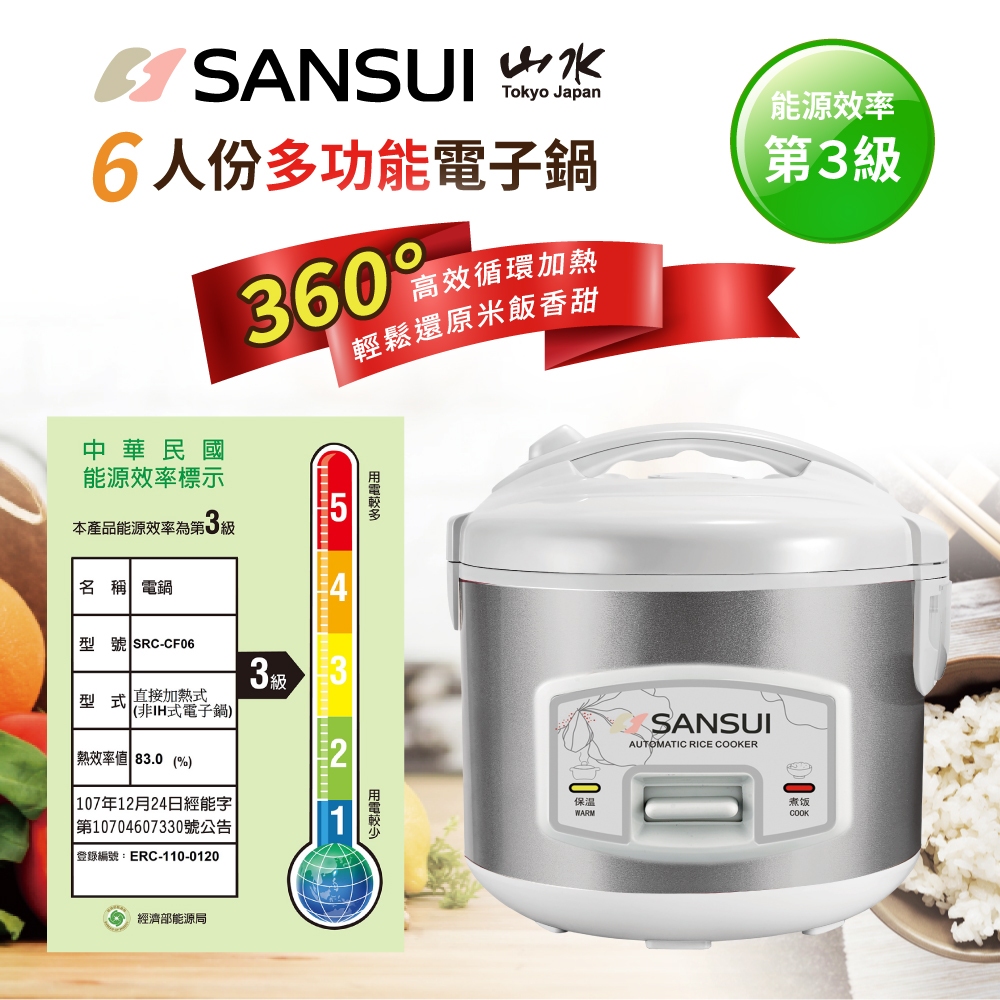 【SANSUI 山水】6人份多功能電子鍋 電鍋 煮飯鍋 電飯鍋 電熱鍋 煮米 褒飯 SRC-CF06